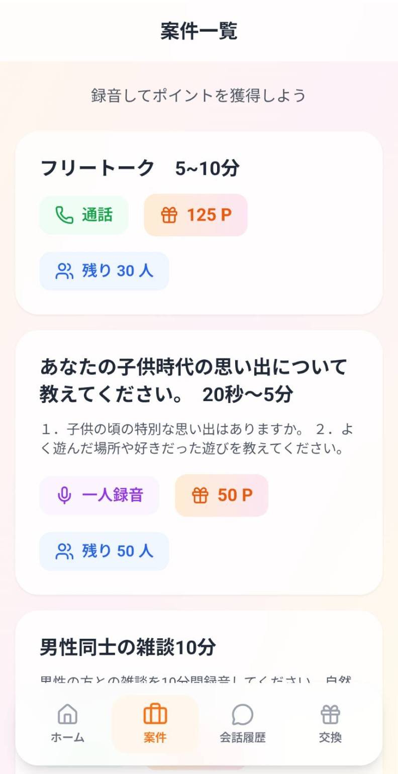 1人でor通話で会話を録音するだけでポイントが貰えるポイ活WEBアプリです。