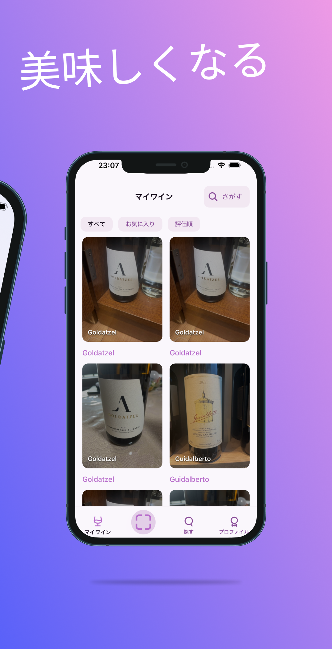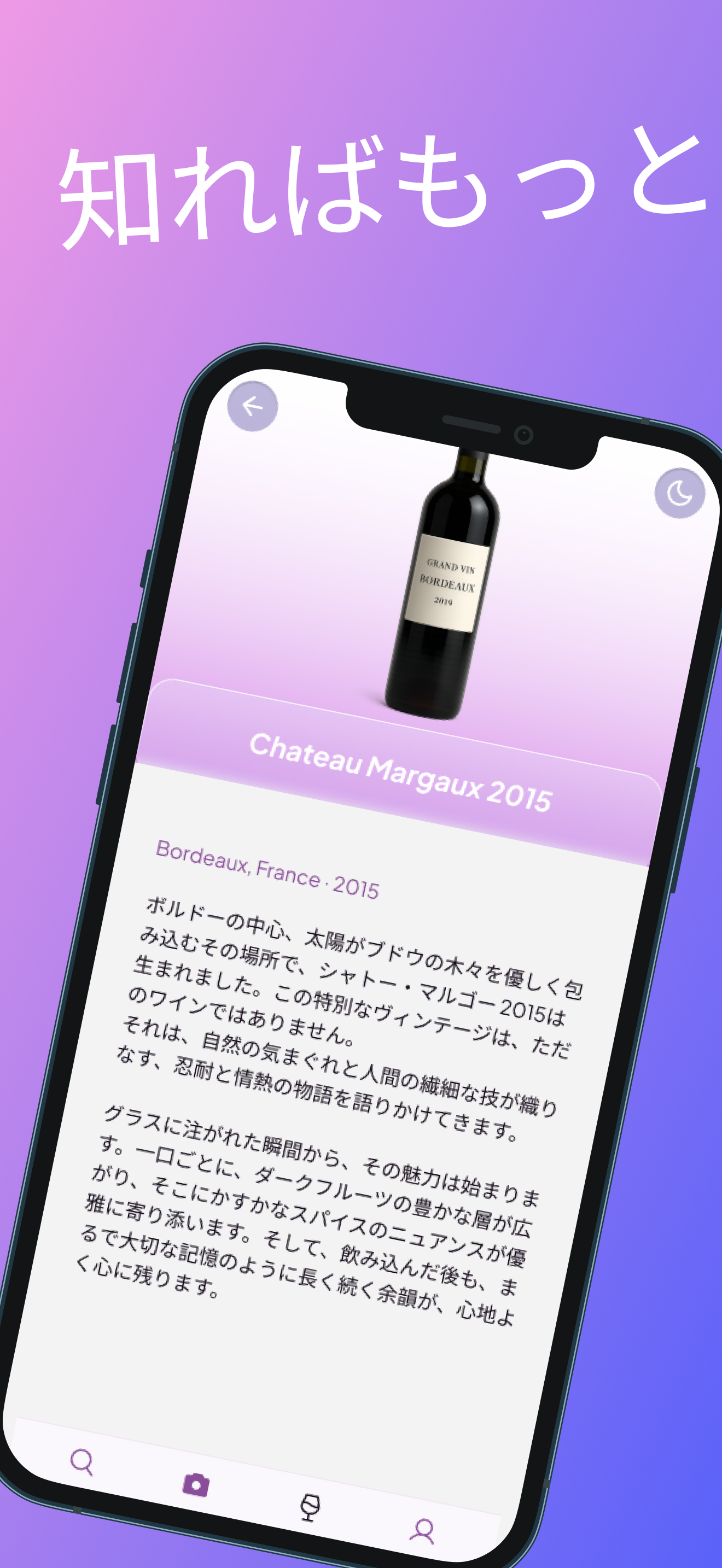 Labelly(ラベリー)は、ワインやシャンパンのラベルをスマホでかざすだけで、銘柄の情報、味の特徴まで一括で教えてくれるスマートソムリエアプリです。