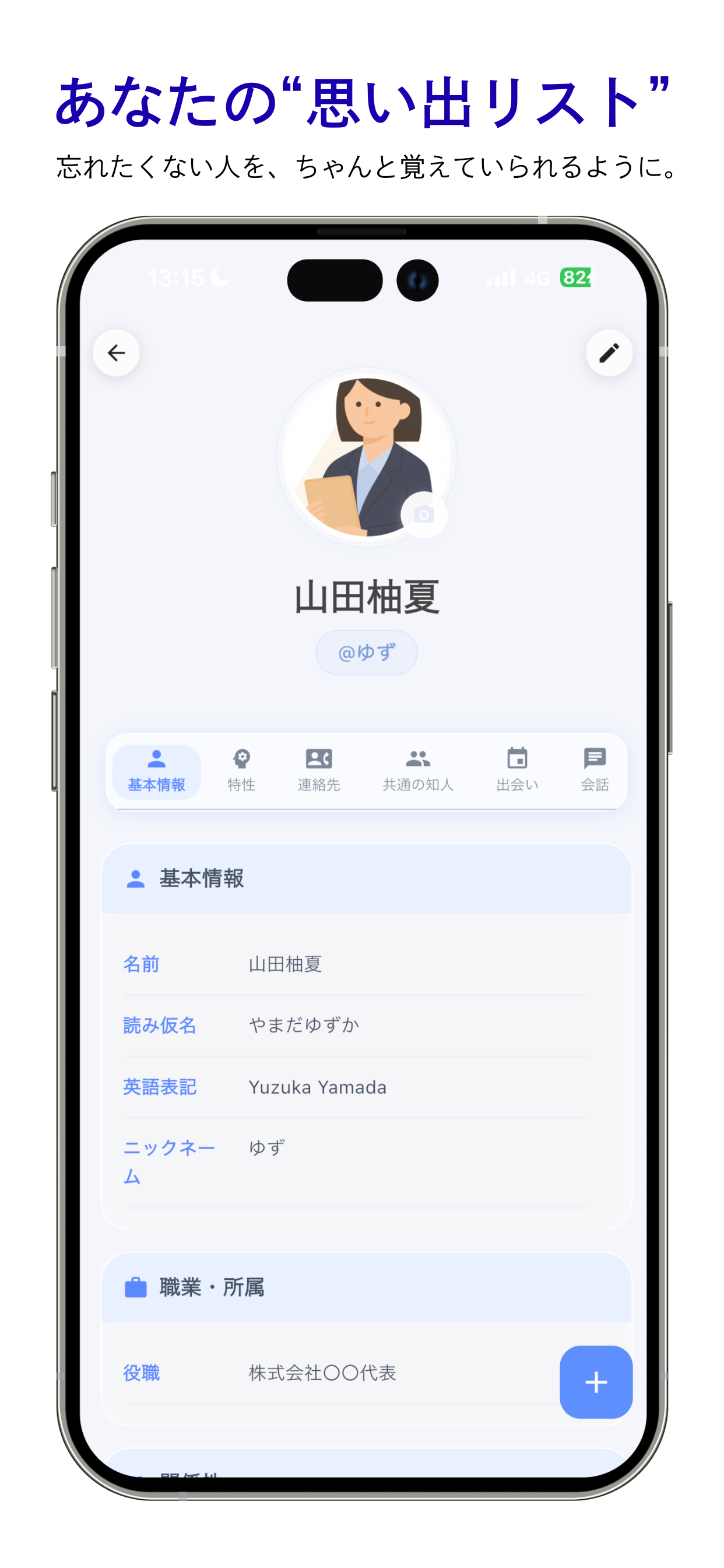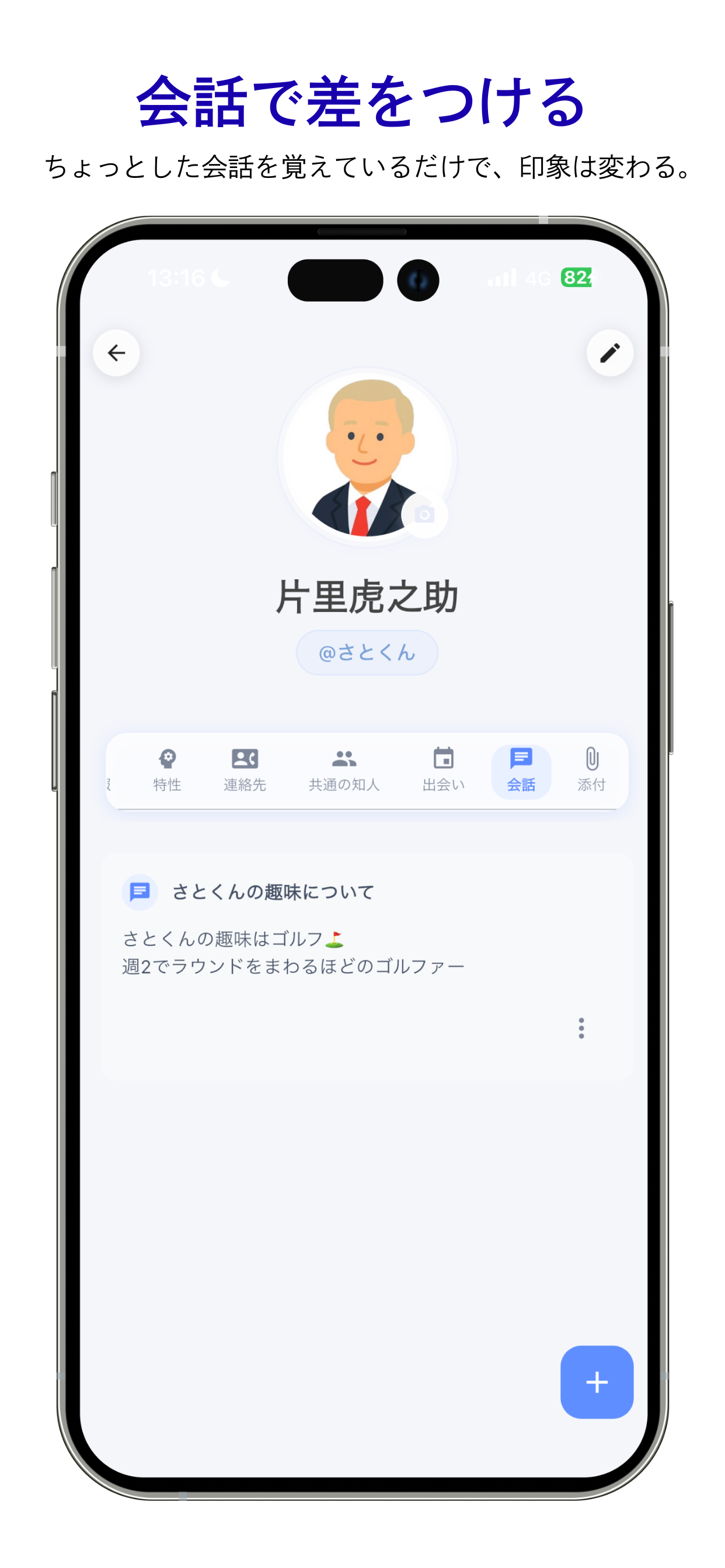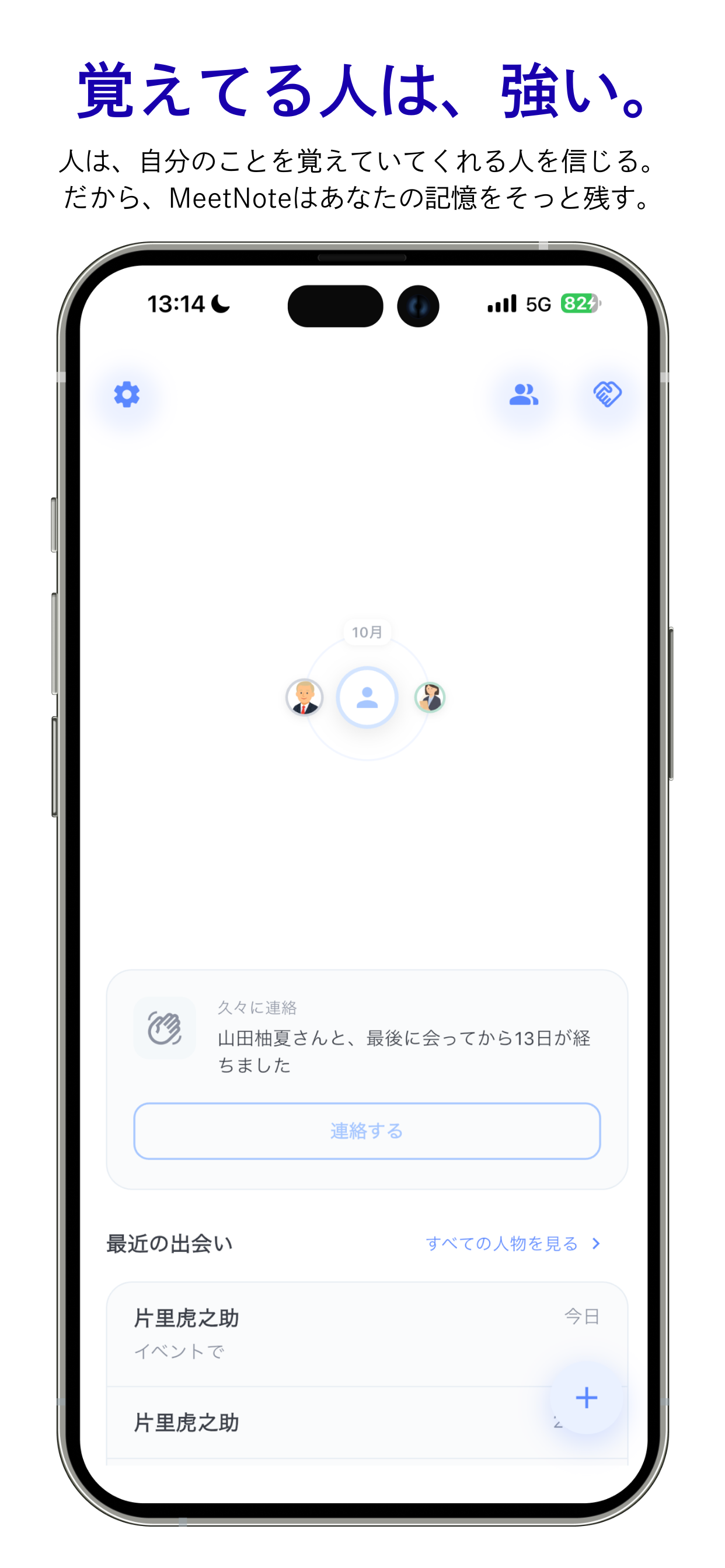 「覚えてる人は、強い。」 MeetNoteは、出会いの記録や会話のメモを残し、 "覚えてくれる人"になれるよう手伝います。