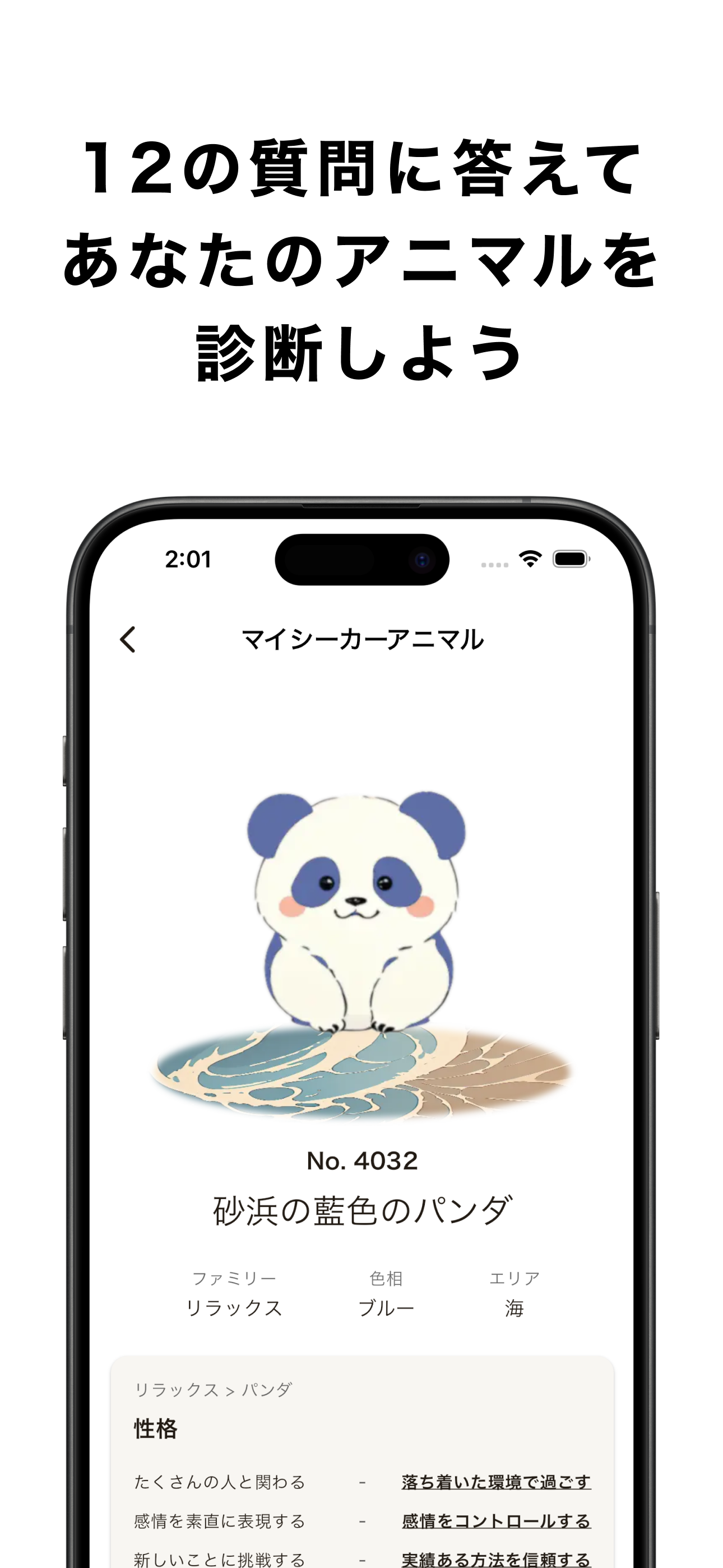 性格診断 × ソーシャル × AI なアプリをリリースしました。 ・12の質問に答えると動物が診断されます ・フレンドと動物(性格)が比較できます ・AIがコミュニケーションをサポートします 友達、同僚、パートナーとお試しください。