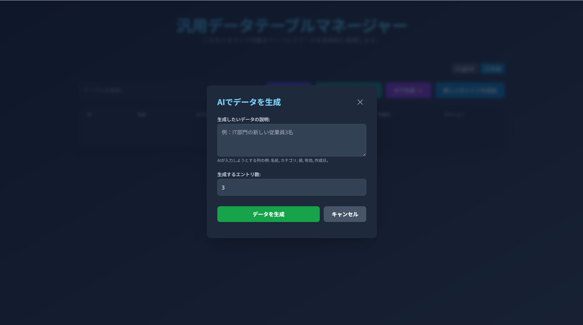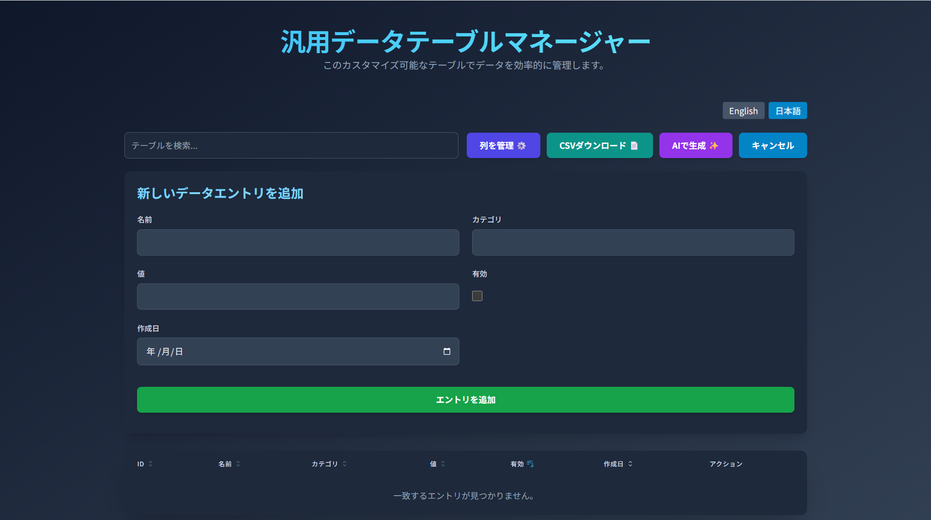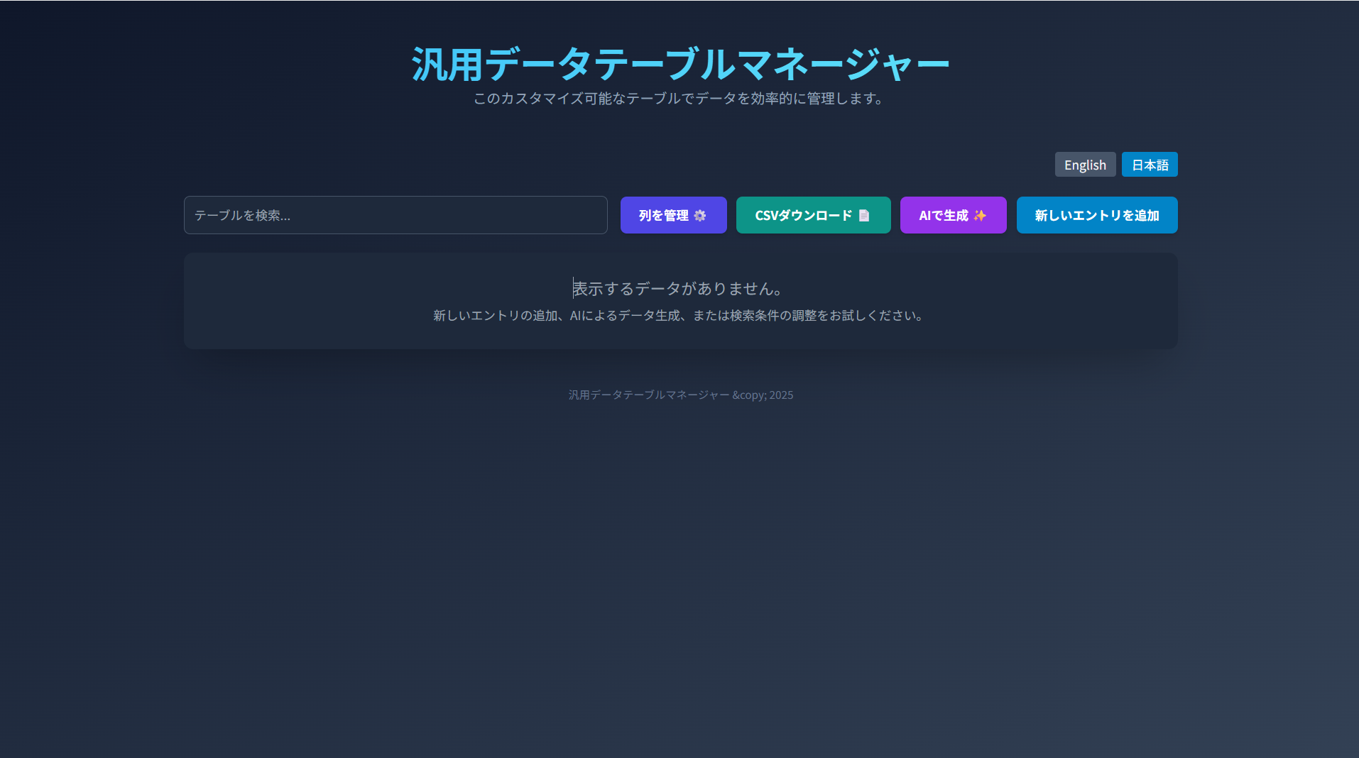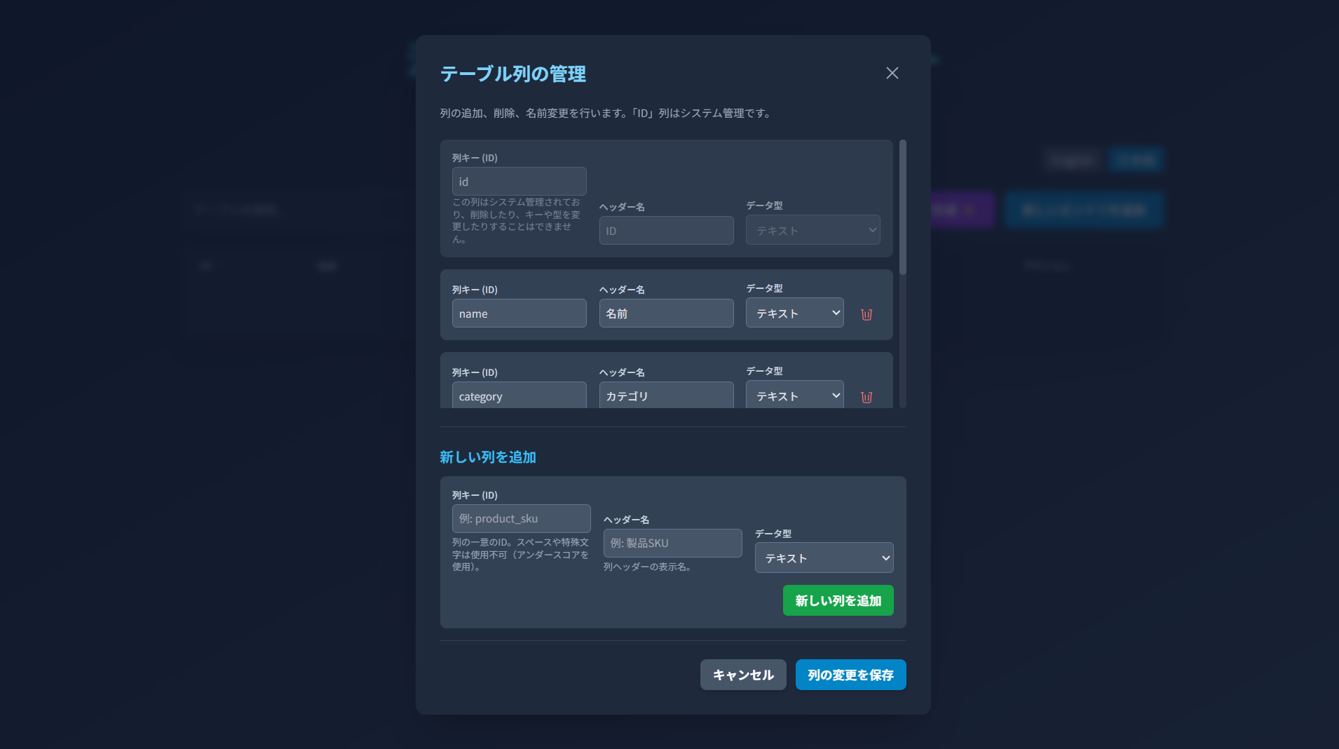 テーブルデータをローカルで作成・管理・ダウンロードができます。 You can create, manage, and download table data locally.