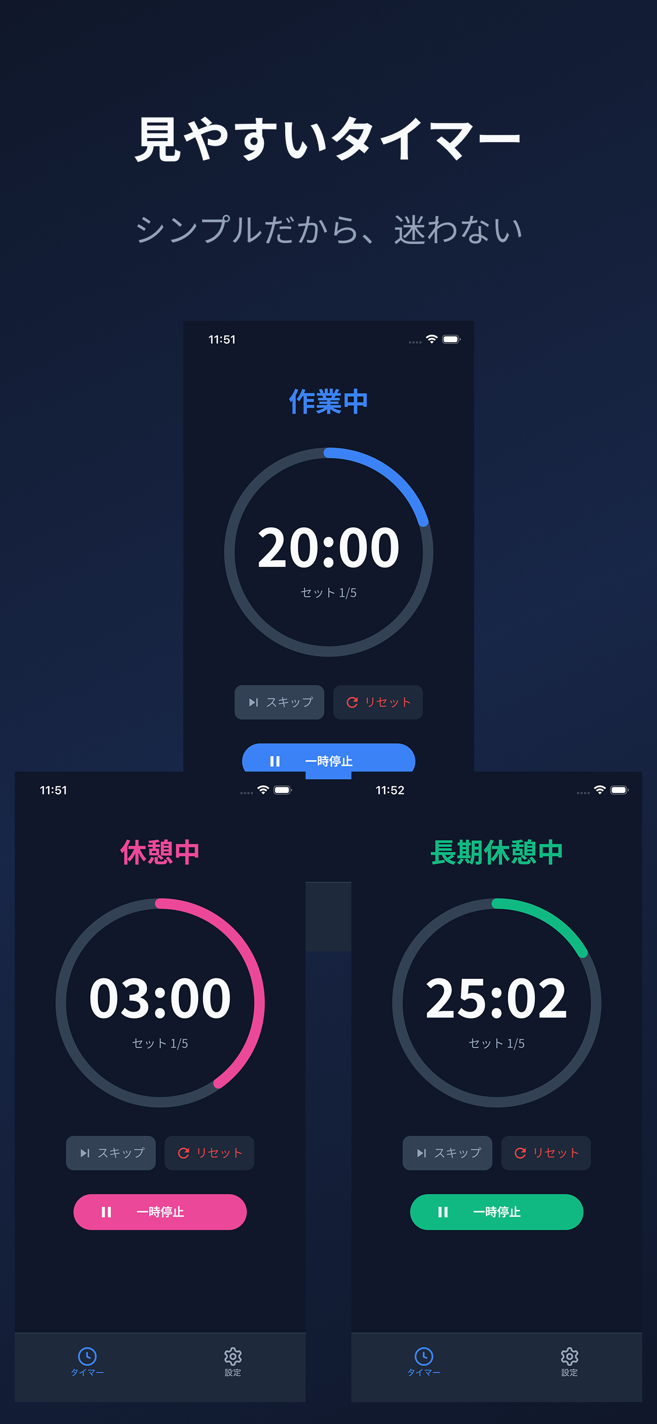 シンプル×高機能なポモドーロタイマー。勉強・仕事・資格試験の集中に。作業/休憩時間を自由にカスタマイズ。