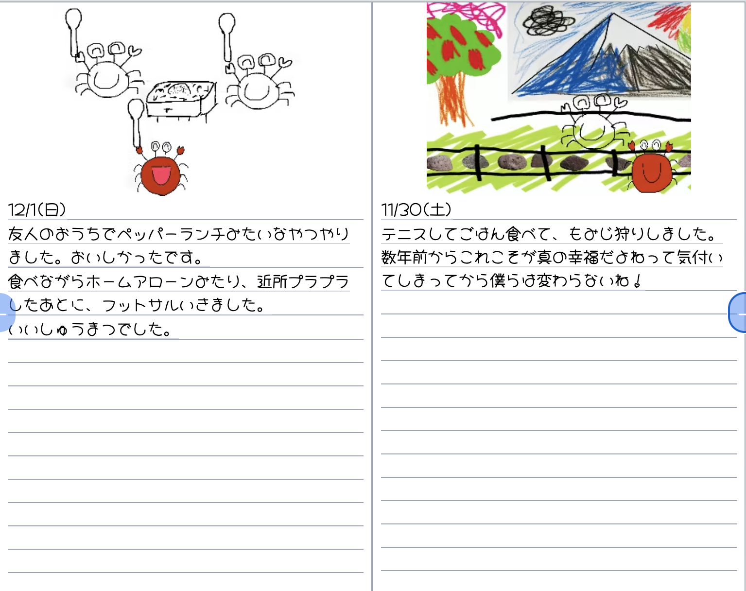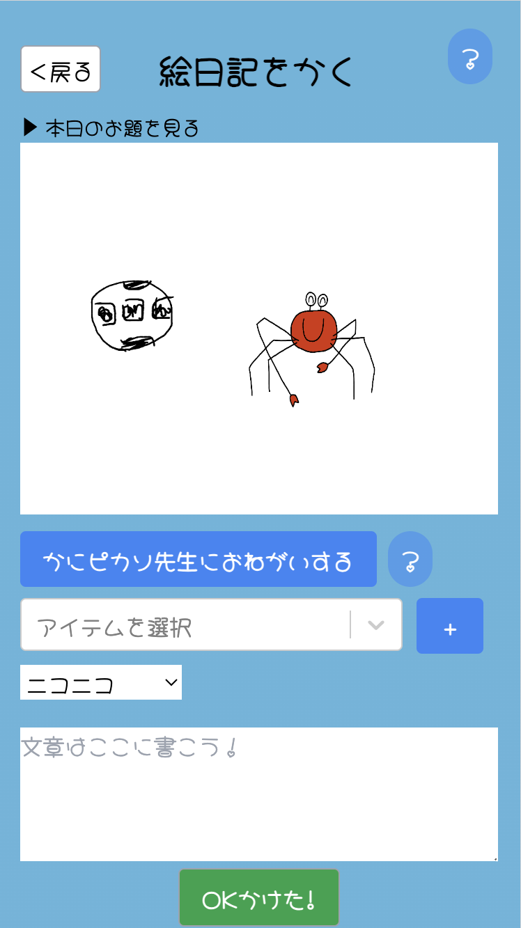 「感性のピュア化」をコンセプトとした絵日記SNSです! 本サービスでは、カニになってもらって絵日記を書いて、童心に帰れるような平和で可愛くて心地よい世界を目指しています🦀