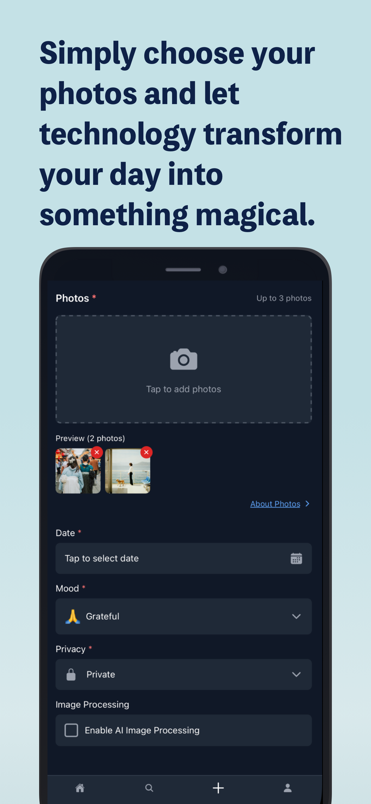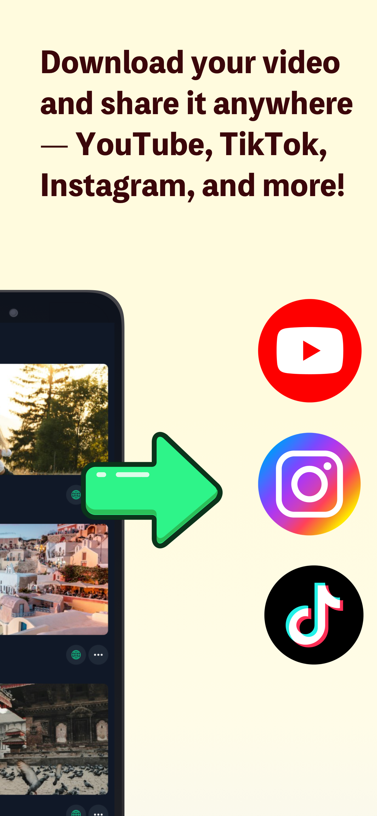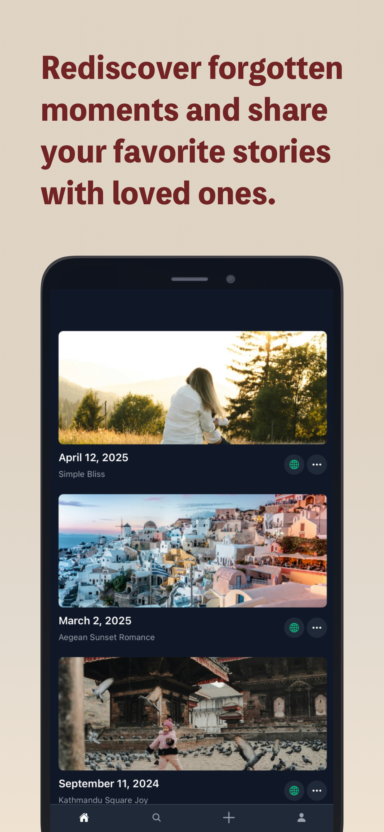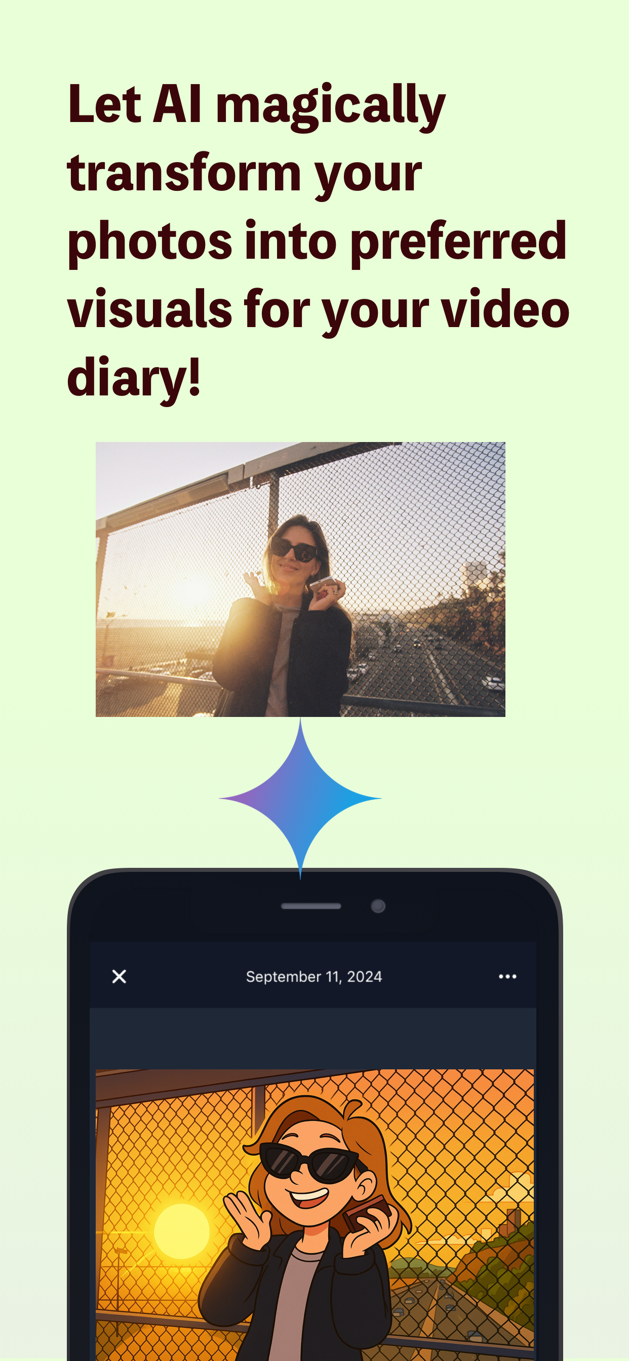 写真をタップすると生成AIでその日あったことなどを日記風にしてくれます ffmpeg で字幕と音楽をつけています