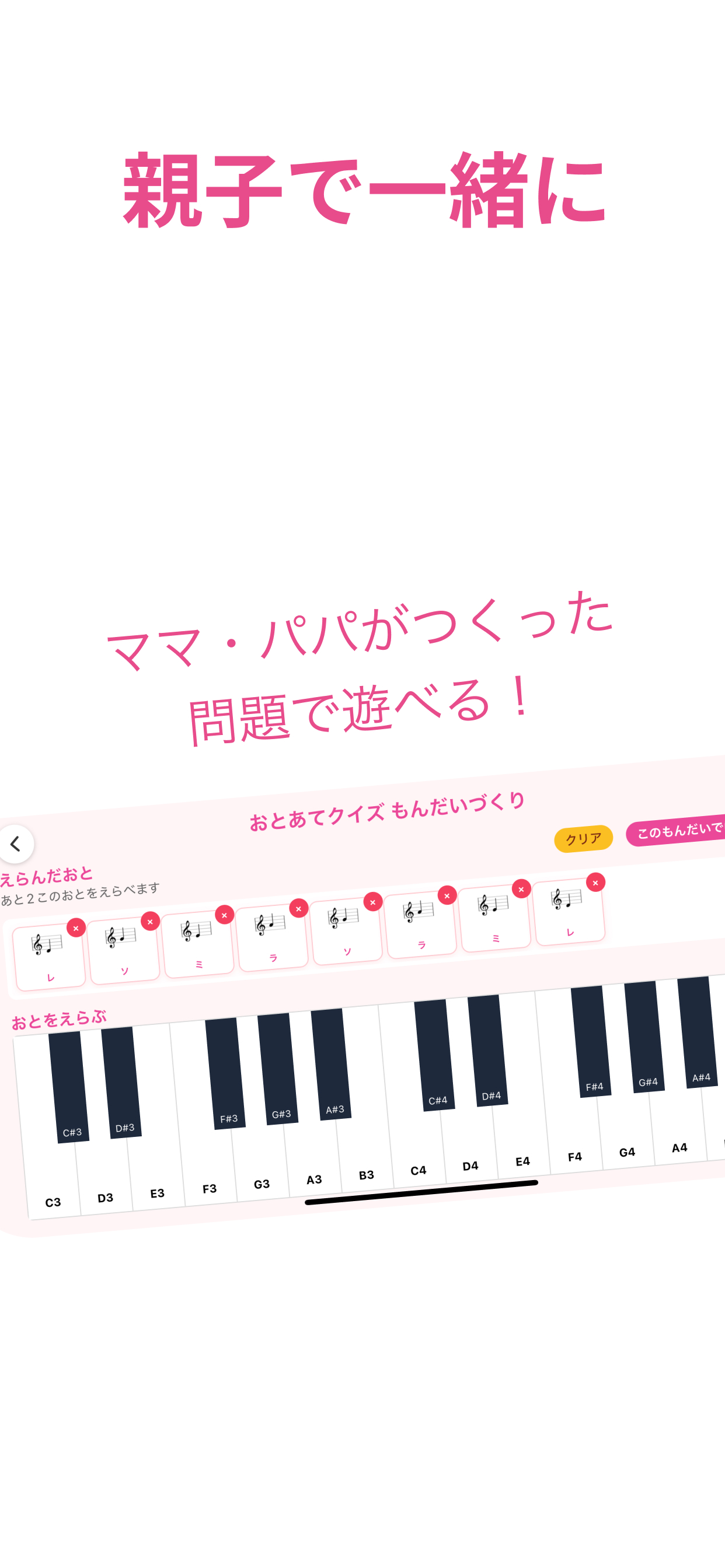 なぜキッズメロディマスターを作ったのか ---------------------------------- 長女は保育園の年長からピアノ教室に通っています。ピアノを習ううえでは音感は大事ですが、ピアノ教室だけでは不十分ですし、自宅で練習をしてみてもすぐに飽きてしまい継続できません。楽しく音感トレーニングができるiPhone/iPadアプリがないか探してみたのですが、これというアプリを見つけられなかったので「キッズメロディマスター」を開発することにしました。 音楽教育アプリを探していて感じたこと ---------------------------------- 【ピアノ教室だけでは不十分】 娘は週に一回ピアノに通っていますが、その時間は曲を弾く練習がメインで、音感トレーニングに使う時間はほとんどありません。そのため、家庭での補助トレーニングが必要だと感じていました。 【既存の音楽アプリ】 無料・有料アプリとも探しましたが、多くは大人向けに設計されていて、小学校低学年の子どもにはあわないと感じるものでした。 キッズメロディマスターで大切にしていること ---------------------------------- 【遊びながら効果的に音感を鍛える】 単純な音感トレーニングだけだとどうしても飽きてしまうので、遊びながら音感を鍛えられるよう設計しました。「おとあてクイズ」や「メロディカードクイズ」は、楽しみながら自然と音を聴き分ける力が身につきます。 【親子で一緒に楽しく音感トレーニング】 子どもだけで遊ぶ設計だとどうしても飽きてしまうので、親子で一緒に音感トレーニングができる「いっしょにあそぶモード」を作りました。 「いっしょにあそぶモード」では、親子で交互に問題を出し合ったり、一緒に音を当てたりすることができます。ピアノのお稽古とは違った角度から、親子で音楽を楽しむ時間を提供します。 【安心・安全な学習環境】 広告は一切表示されません。お子さまが集中して学べる環境を最優先にしています。また、オフラインでも使えるので、いつでもどこでも気軽に楽しめます。 ---------------------------------- 公式サイト https://www.sheeplab-kids.com/ Note https://note.com/sheeplab/n/n1115a71594ae