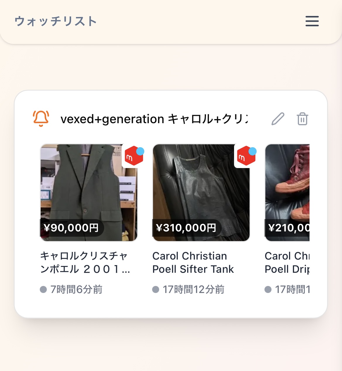 「フリマ通知」は、フリマアプリであなたの欲しい商品が出品されたら、すぐにお知らせするツールです。フリマウォッチやフリマアラートのように、キーワードを登録しておくだけでOK。無料で使えて、メルカリ・Yahoo!フリマなどの主要フリマサイトに対応。もう掘り出し物を見逃しません。