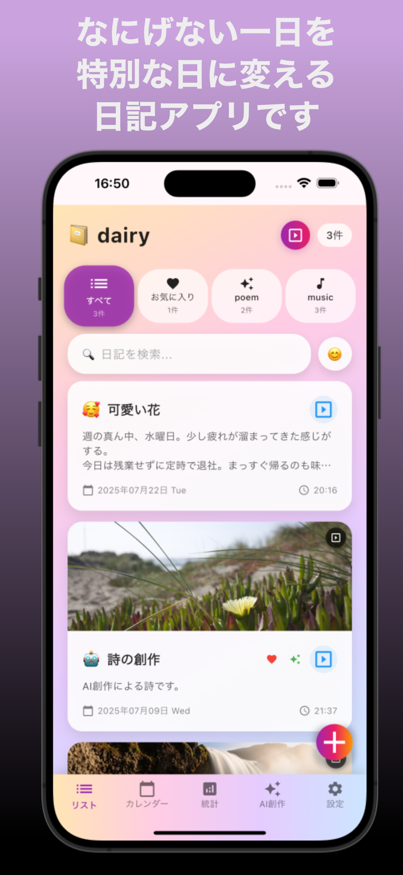 「AutoPoet」は、あなたの日々を詩に変える、魔法のようなAI日記アプリです。何気ない日常の出来事、心に浮かんだ感情、大切な思い出を書き留めるだけで、AIがそれを感動的な詩や物語へと昇華させます。10種類の絵文字でその日の気分を選ぶだけで、あなたの感情に寄り添った作品が生まれる、これまでにない創作体験を提供します。 最新のAI技術(Google Gemini)を搭載し、あなたの日記の内容を深く理解。単なる記録を、心を揺さぶるアート作品へと変化させます。さらに、その日の日記にぴったりの楽曲をAIが選曲し、YouTube動画を自動で貼り付ける新機能も搭載。あなたの思い出を、音楽と共に、より鮮やかに彩ります。 美しいUIデザインと、パスワードによるプライバシー保護、カレンダーや統計機能など、日記アプリとしての使いやすさも徹底的に追求しました。日々の記録を、もっと楽しく、もっと創造的に。「AutoPoet」で、あなたの毎日を、世界に一つだけの美しい詩集に変えてみませんか?
