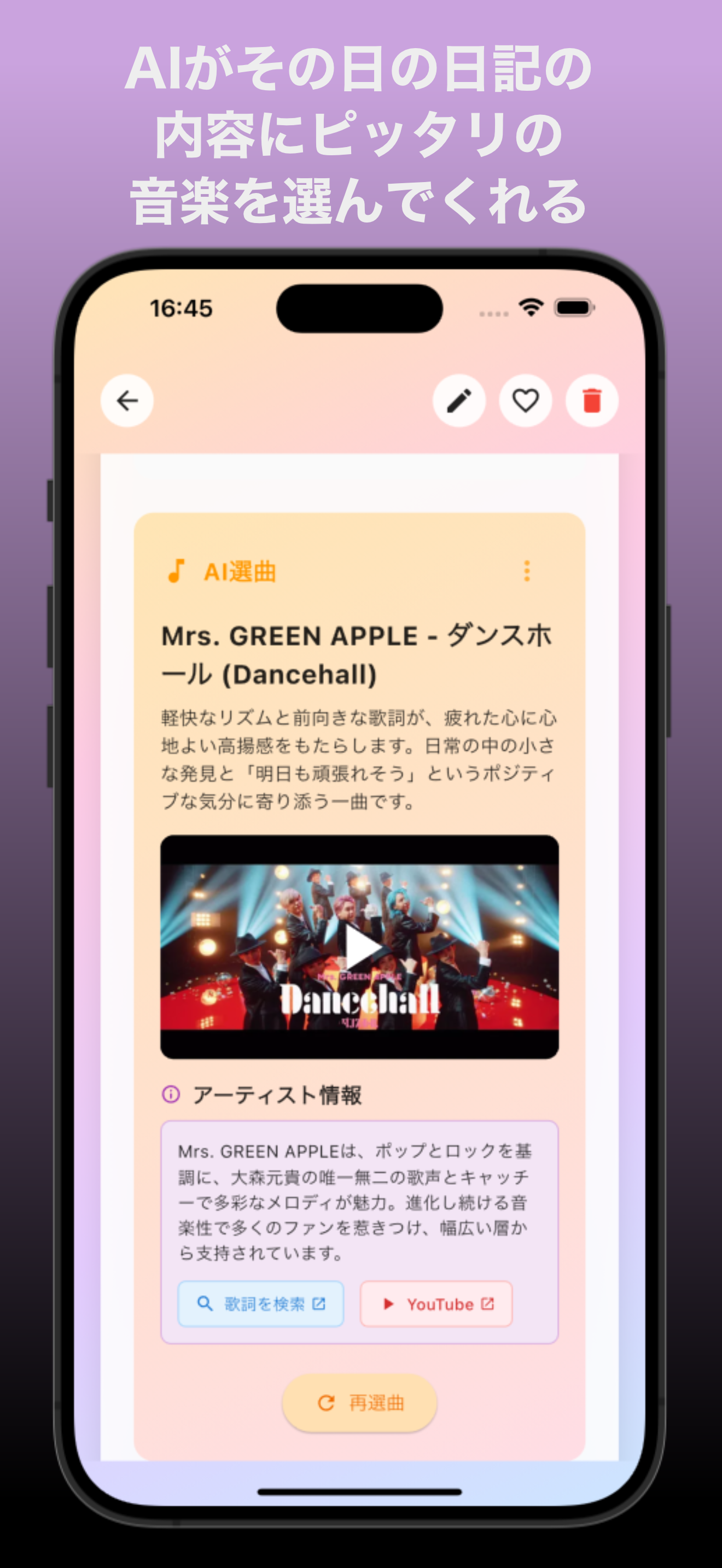 日記からAIが選曲、作詞、物語を生成