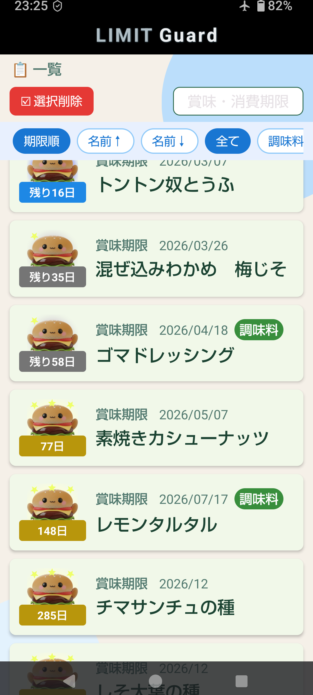 賞味機嫌 -賞味期限・消費期限を簡単に管理する