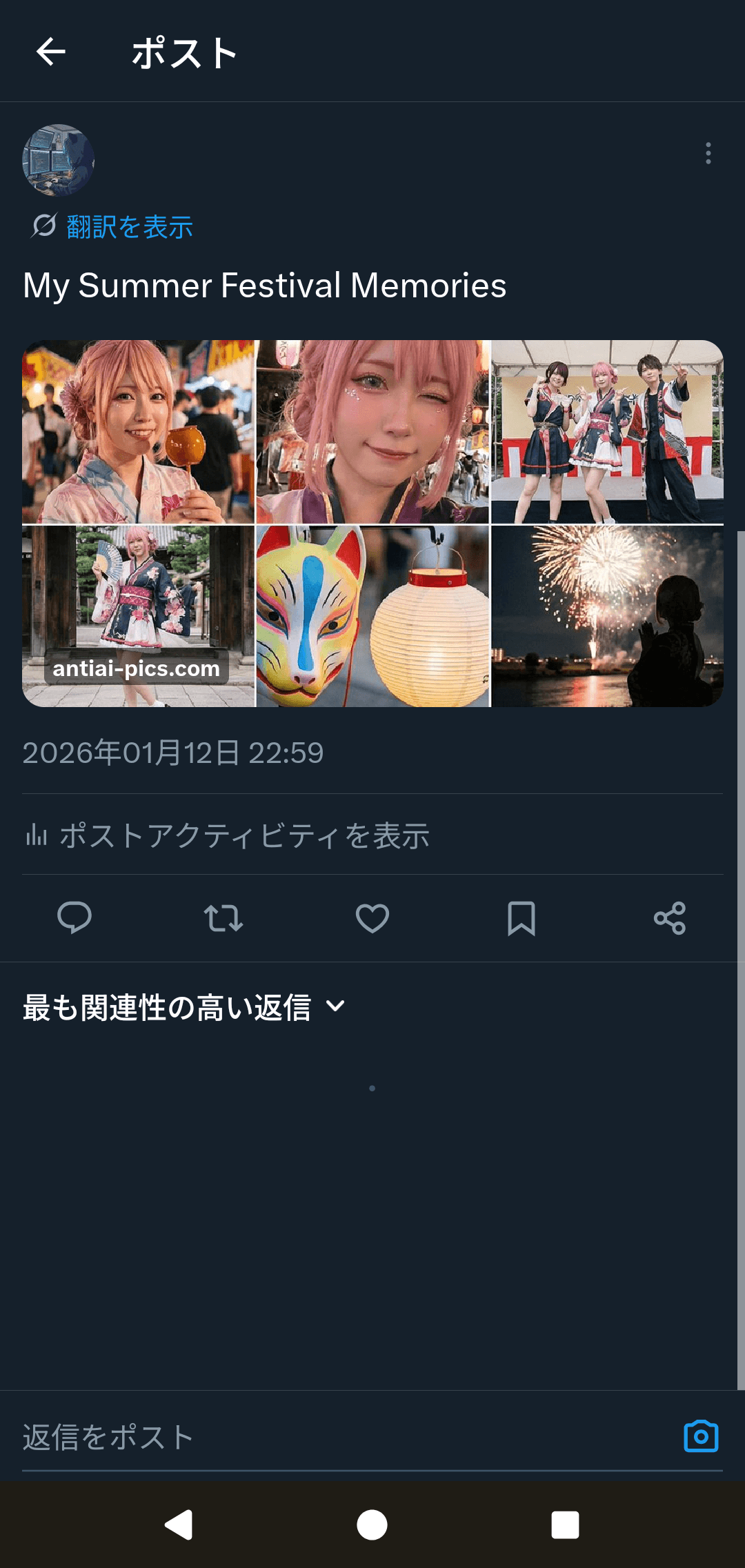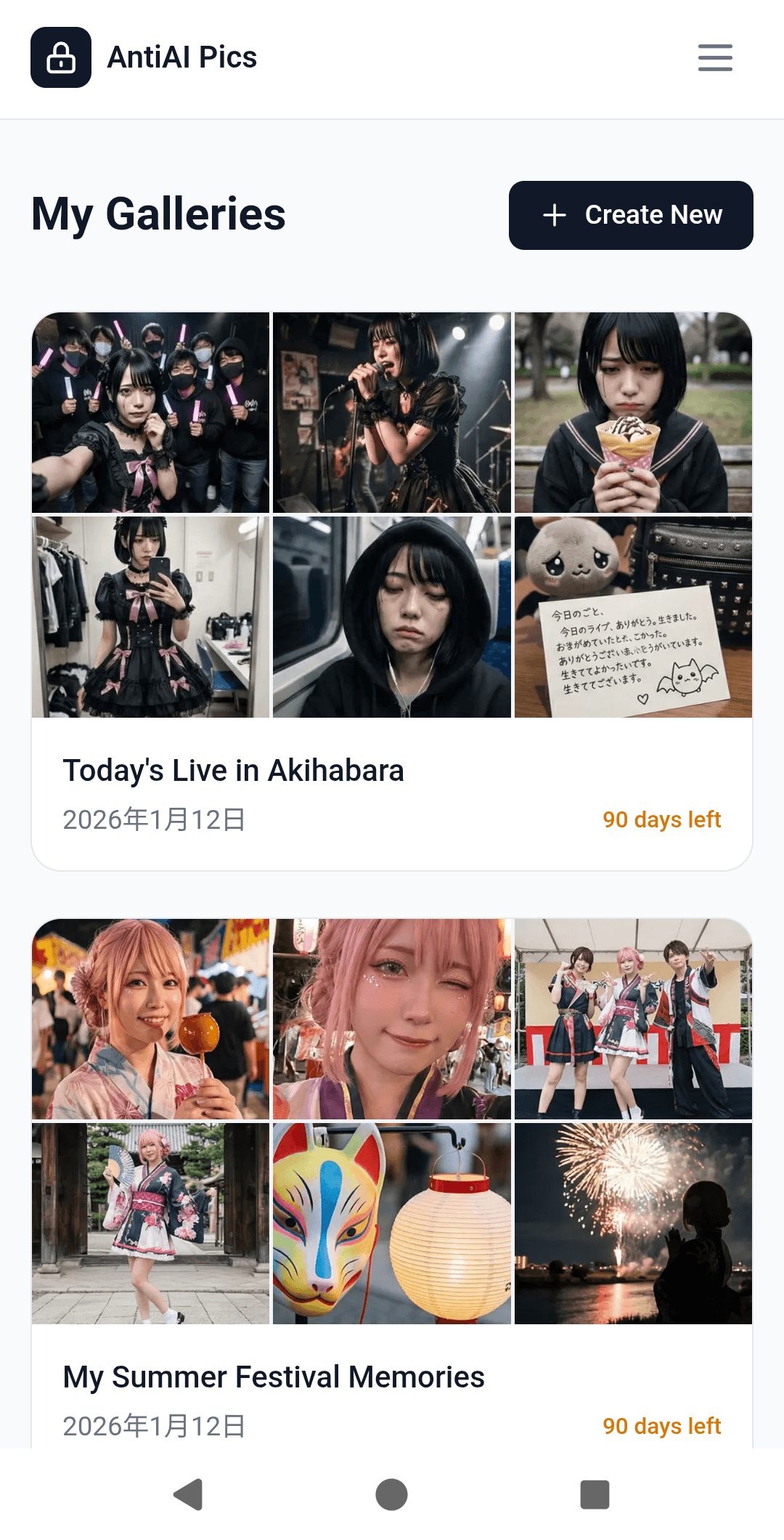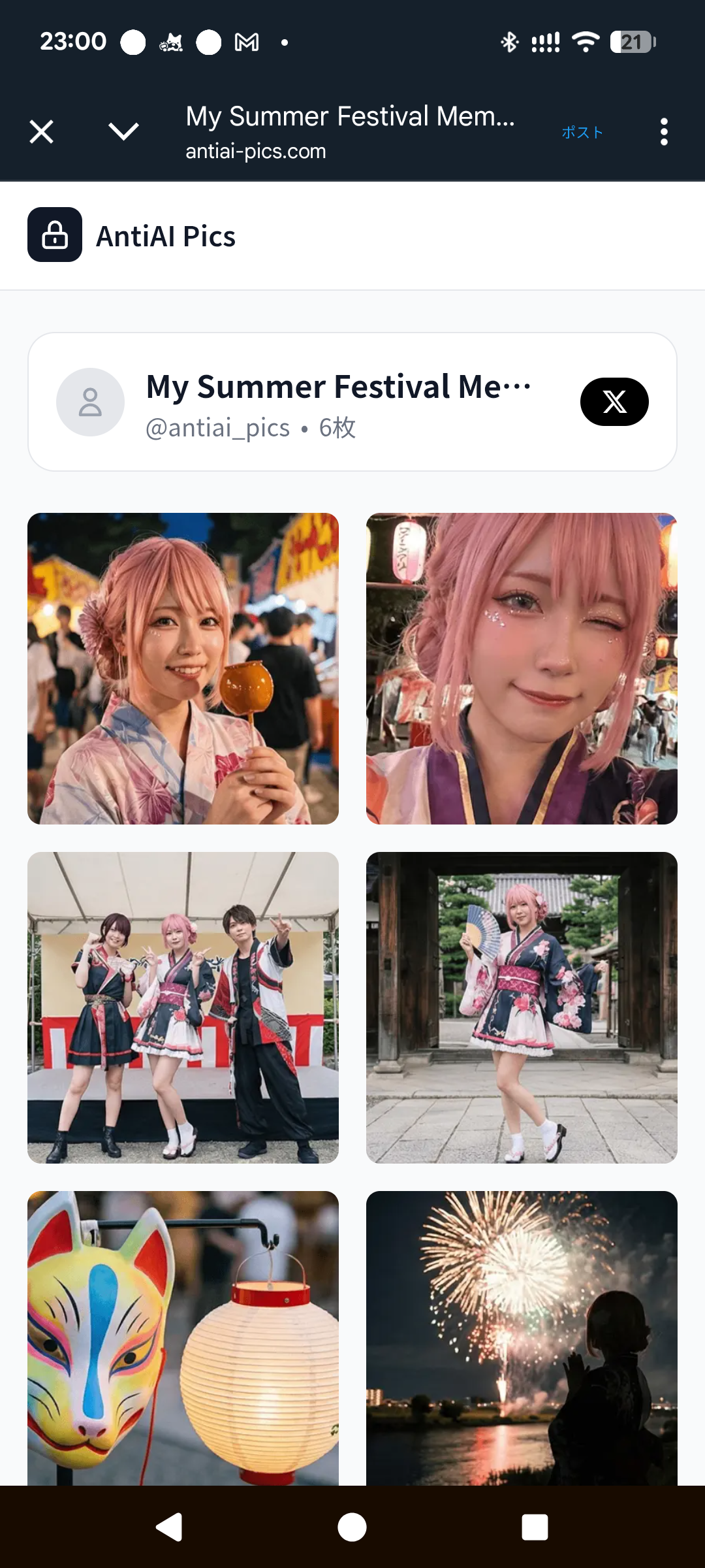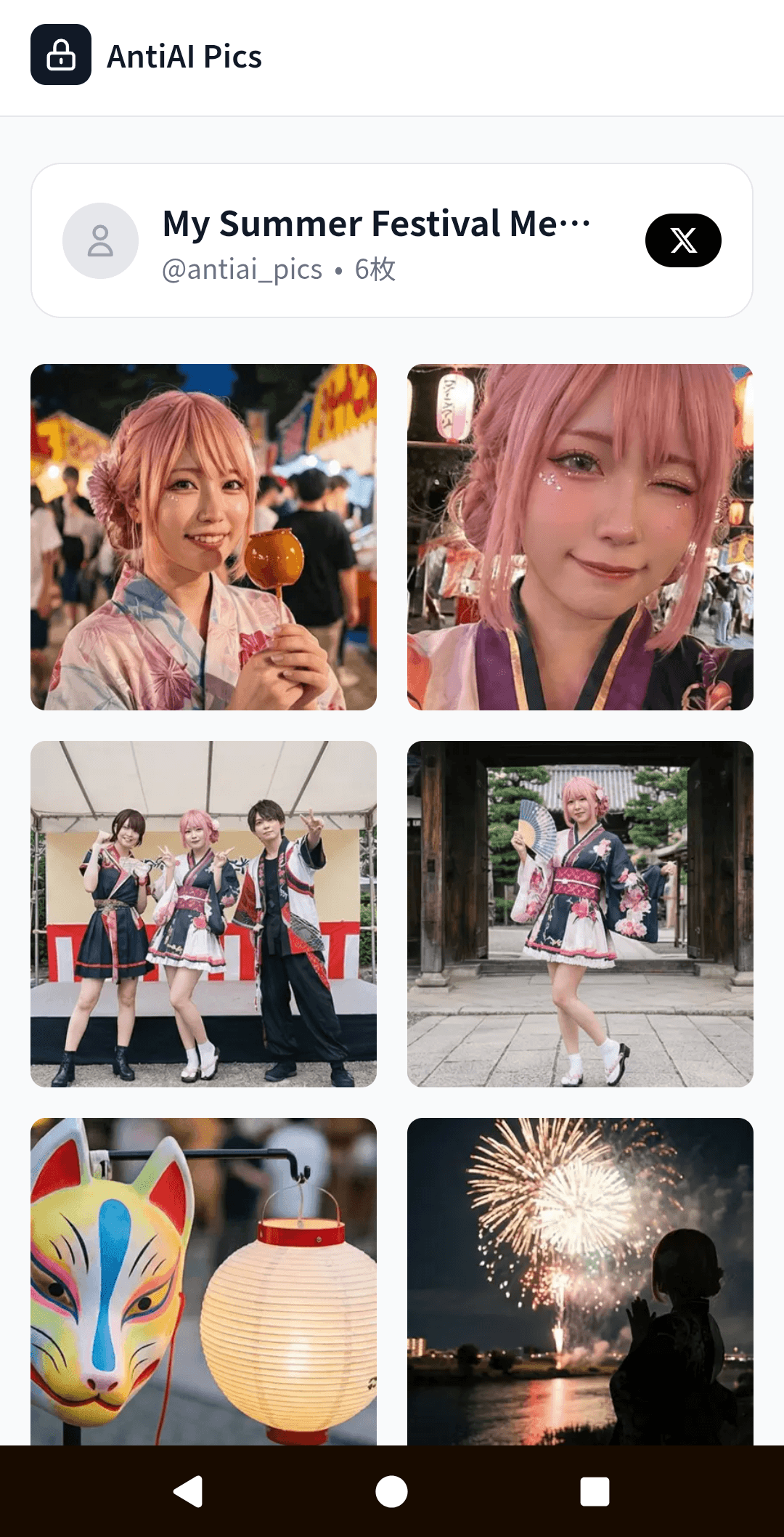 特殊な加工技術でGrokの不正加工をブロック。長押し保存も防げて安心のフォトシェアサービス。イラスト・写真・コスプレ写真などをもっと気軽にSNSにシェアしよう。 ■どんなサービス? Xに投稿した写真がGrokで無断加工される被害が急増しています。AntiAI Picsは「長押し保存をブロック」+「保存されてもGrokに読み取らせない」二重の保護で、安心して写真をシェアできるギャラリーサービスです。 ■主な機能 ・AI読み取り防止:特殊な加工でGrokがエラーを起こす ・長押し保存ブロック:カジュアルな無断保存を防止 ・OGP対応:Xでシェアするとカードにプレビュー表示 ■こんな人に使ってほしい コスプレイヤー / ポートレートモデル / インフルエンサー / フォトグラファー / 撮影会主催者 / 家族写真を守りたい方
