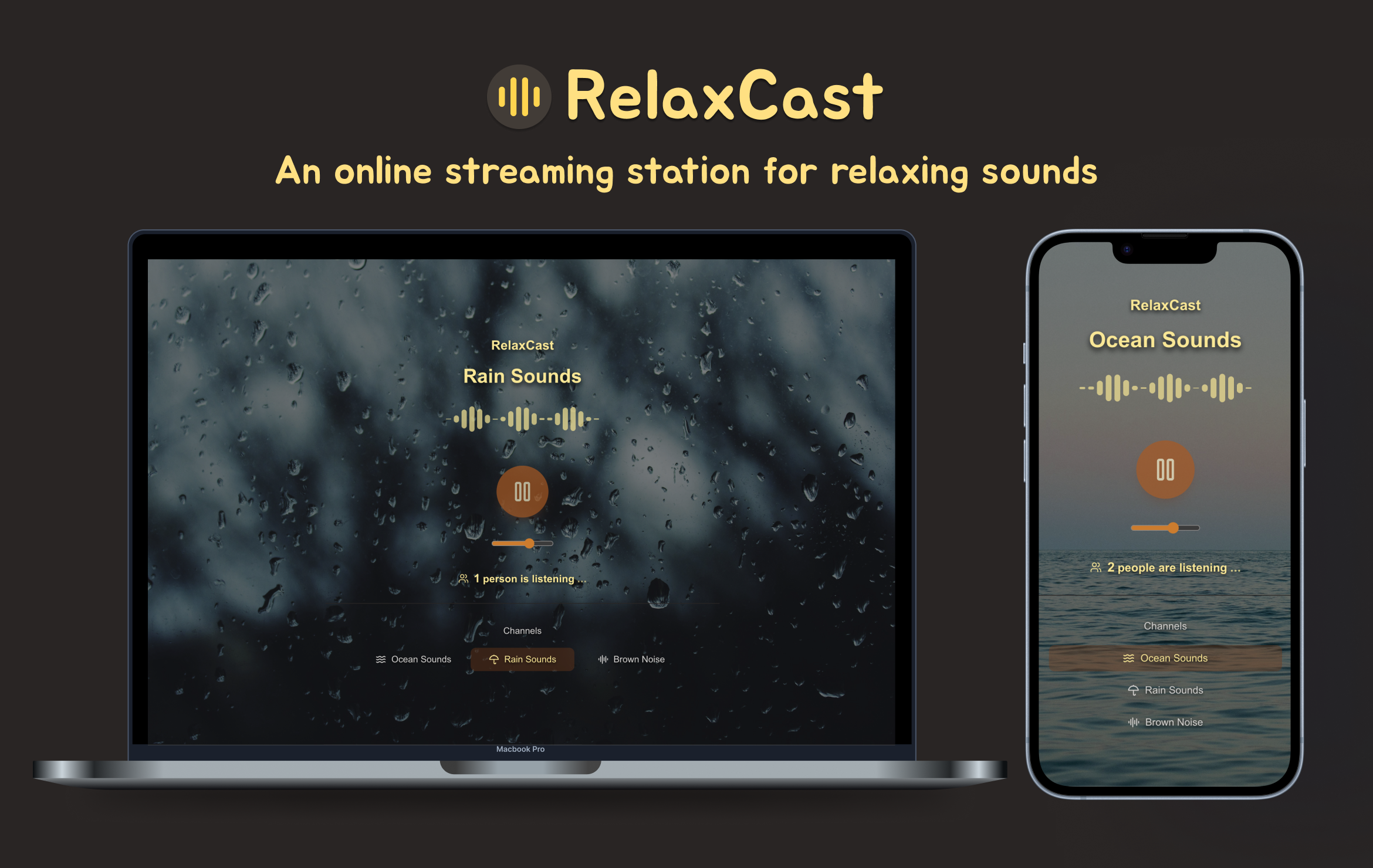 波音、雨音、焚き火の音、ブラウンノイズなどのリラックスできる環境音を配信しているインターネットラジオです。 作業中や就寝前など落ち着きたいタイミングでぜひ使ってみてください。