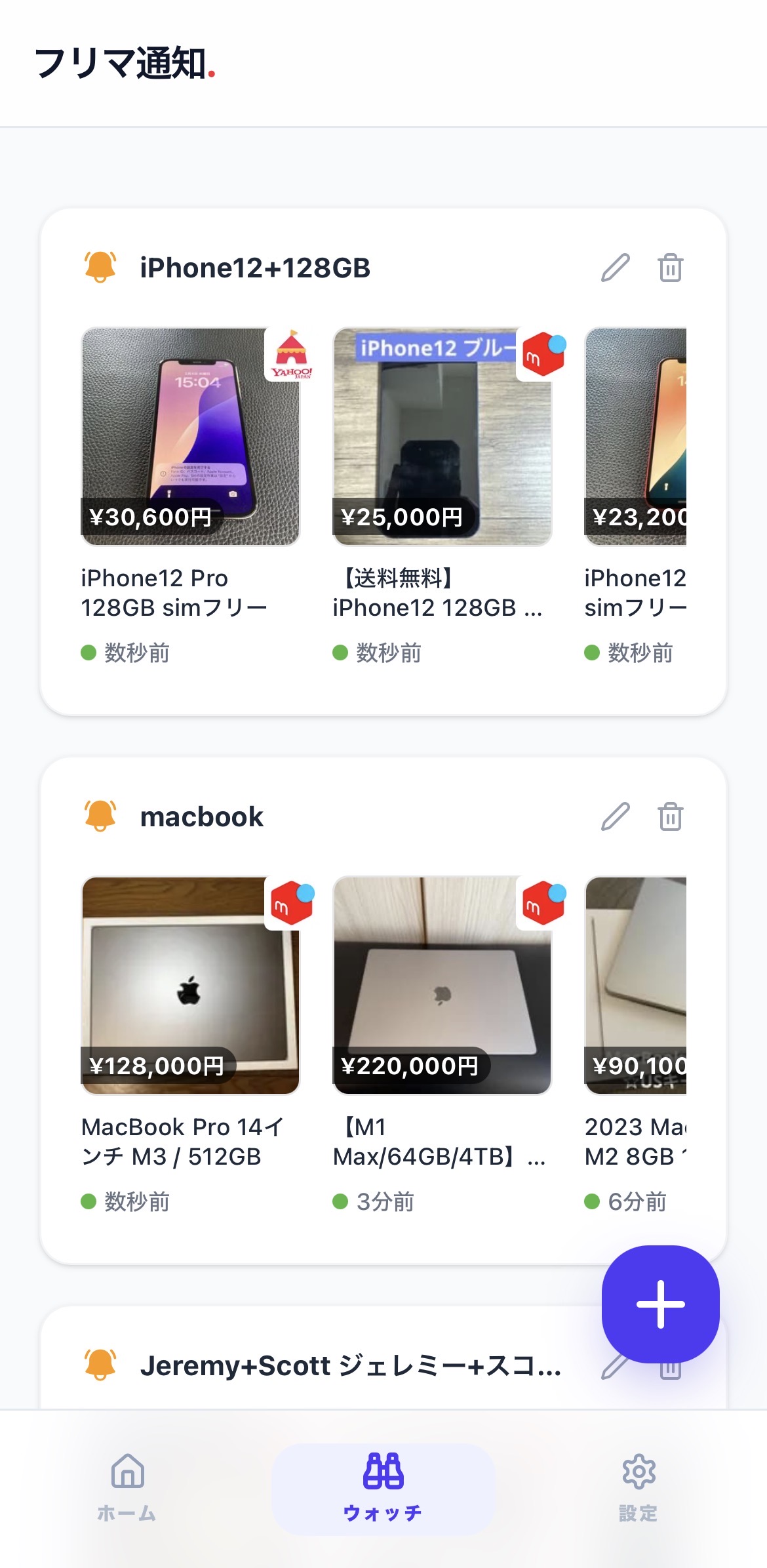「あと少し早く気づいていれば買えたのに…」 フリマサイトでそんな悔しい思いをしたことはありませんか? 「フリマ通知」は、あなたの代わりにフリマアプリを24時間365日自動で監視するサポートツールです。 探している条件にピッタリの商品が出品されたら、スマホにすぐさまプッシュ通知! 仕事中や寝ている間に出品されたお宝アイテムも、誰より早く見つけることができます。 【主要4サービスを網羅!対応フリマサイト】 • メルカリ • ラクマ • ヤフオク • Yahoo!フリマ 【使い方は超簡単!たったの2ステップ】 1. 条件を登録する 欲しい商品の「キーワード」や「希望価格」などをセットするだけ! 2. あとは待つだけ プッシュ通知をオンにして、普段通りに過ごしていればOK。商品が出品された瞬間に、あなたのスマホへ直接お知らせが届きます。 【選べる料金プラン:基本無料で全機能使い放題!】 まずは完全無料で、圧倒的な便利さを体感してください。 • 無料版(ライトユーザー向け) • 料金: 完全無料(すべての機能が使えます) • 登録キーワード数: 最大3件まで • 通知スピード: 出品から2〜3分程度 • 有料版(絶対に買い逃したくないガチ勢向け) • 料金: 月額500円 • 登録キーワード数: 最大100件まで!複数のアイテムを同時に探せます。 • 通知スピード: 最短数秒〜1分!ライバルに圧倒的な差をつけ、最速で商品をゲットできます。 もう、何時間もフリマアプリに張り付いてリロードを繰り返す必要はありません。 「フリマ通知」を使って、欲しかったあの商品を誰よりも賢く、お得に手に入れましょう!