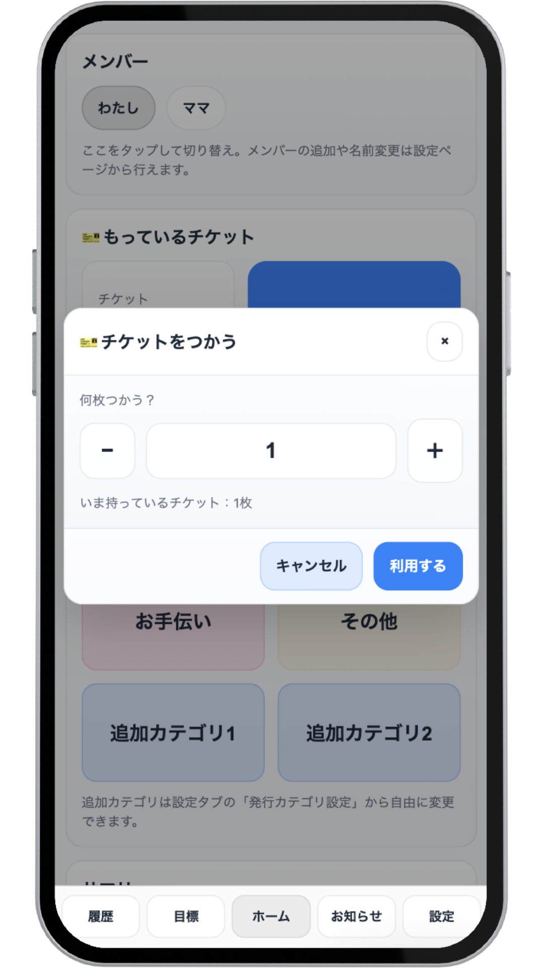 子どものがんばりをチケットで見える化して、親子で楽しく続ける習慣アプリ