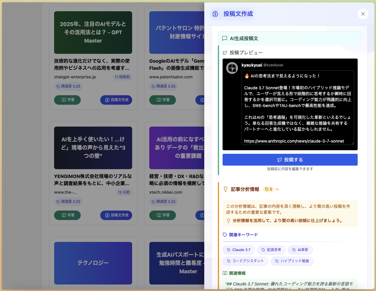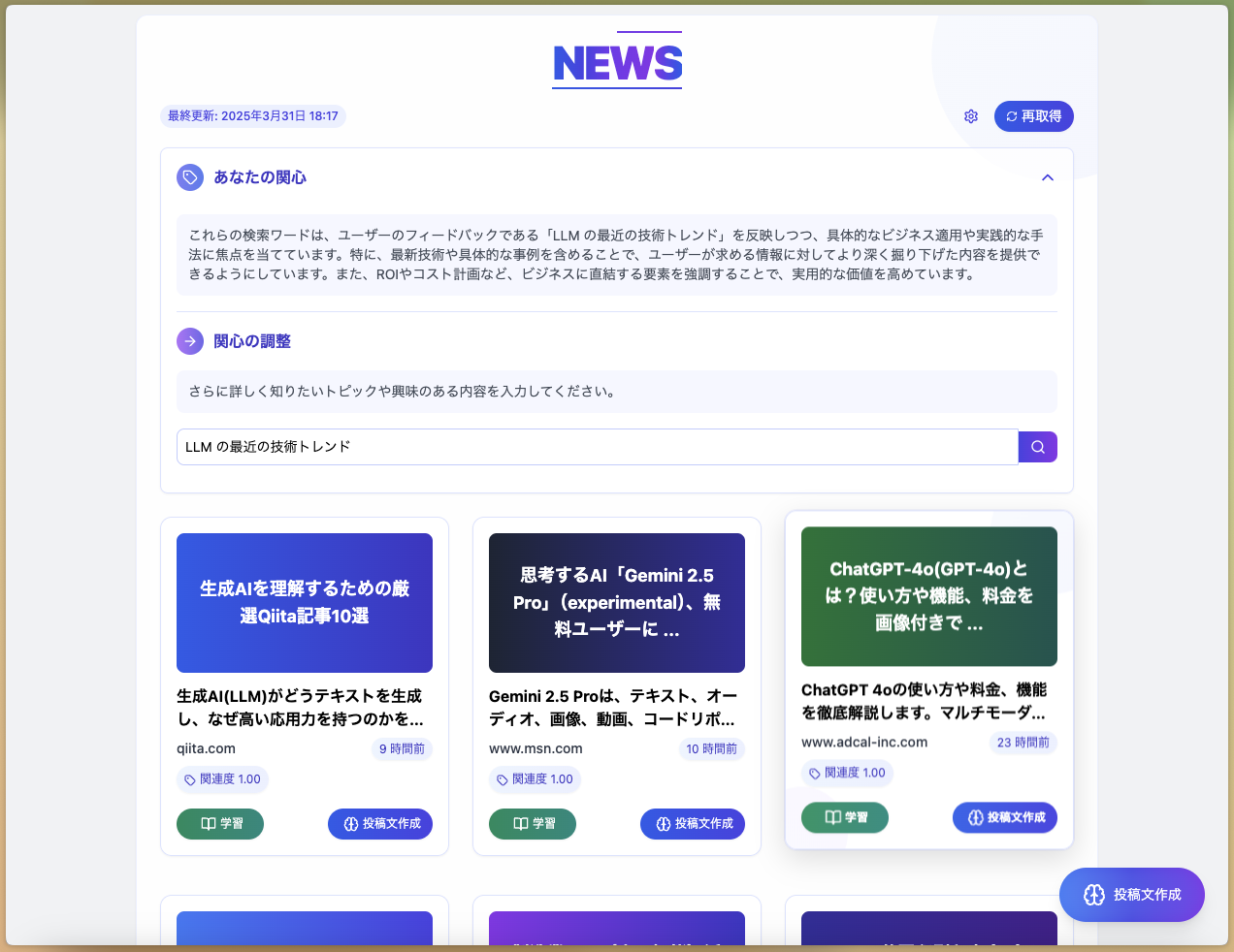 Webコンテンツを深く理解し、価値ある情報へ。 興味に合わせた情報提供、魅力的な投稿作成支援、効果的な関連知識の探索で、あなたの知識と発信力を最大化します。