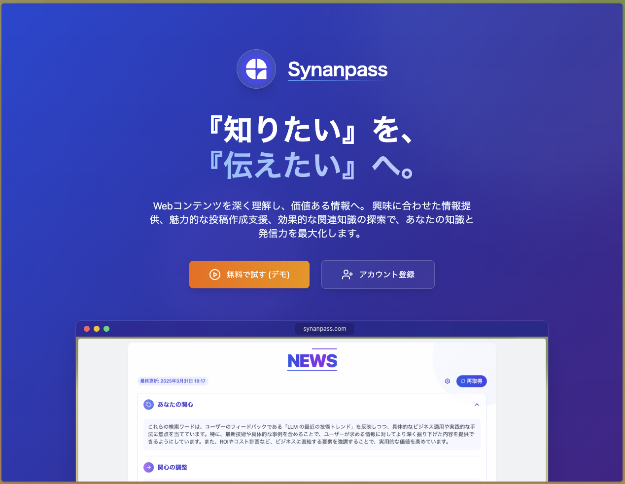 『知りたい』を、『伝えたい』へ。
