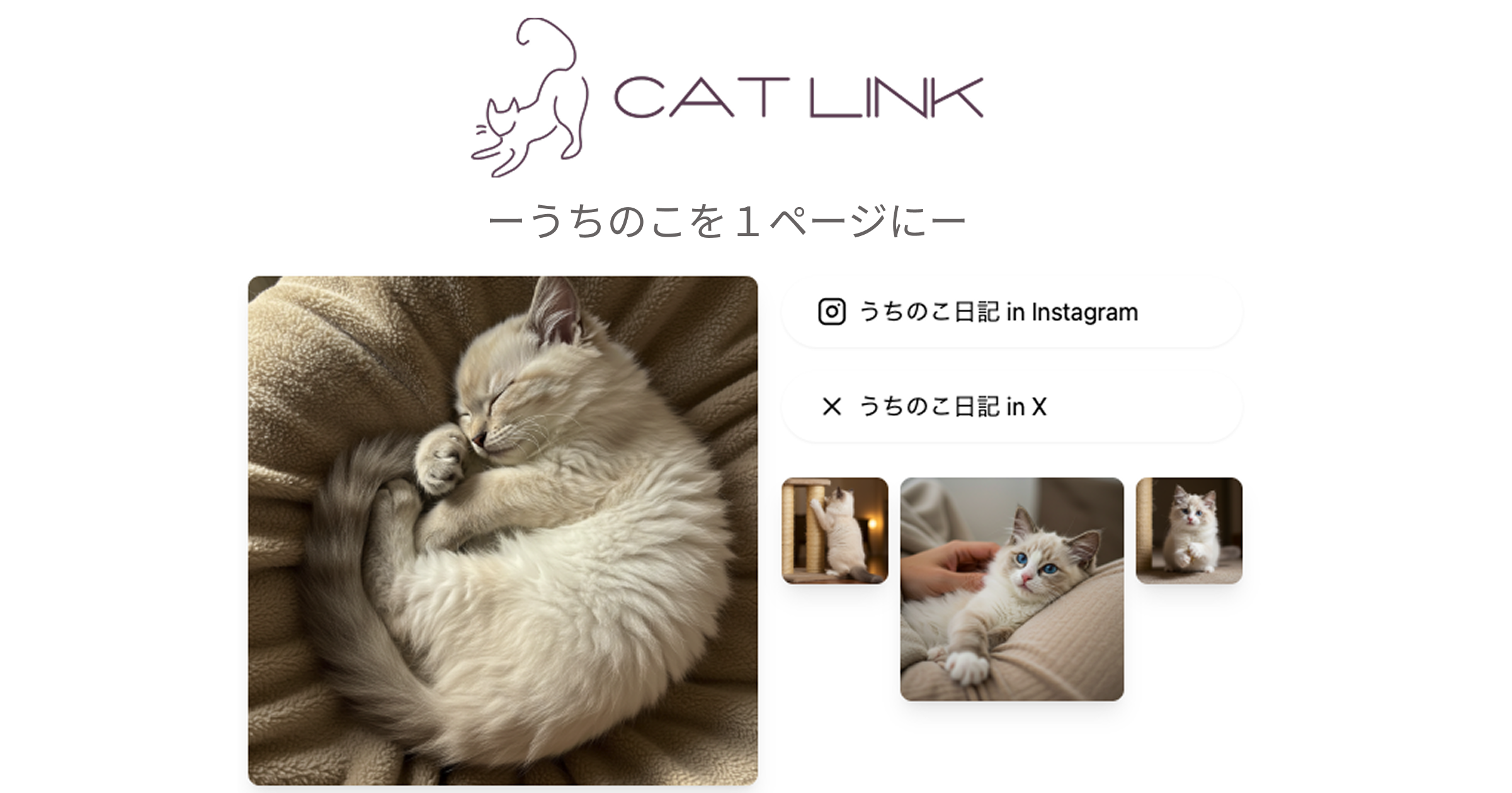 『CAT LINK』は愛猫のプロフィールページをスマホで簡単に作成できるサービスです。ページはSNSで手軽に共有できます。 お気に入りの写真やプロフィールを直感的な操作で登録するだけで、世界にひとつだけの、オリジナルの愛猫ページが誕生します。 また、AIが猫ちゃんの気持ちを分析して代弁してくれる『ねこのひとこと』機能を搭載しています。猫ちゃんが今どんな気分か、何を考えているのかをAIが分析してくれるので、愛猫への理解がより深まるかも? 愛猫との特別な思い出を記録する場所として、また猫友達を作るきっかけとして、『CAT LINK』をぜひご活用ください。猫好きの皆さんの参加をお待ちしています! 🐾 CAT LINKはこちらから → https://cat-link.catnote.tokyo