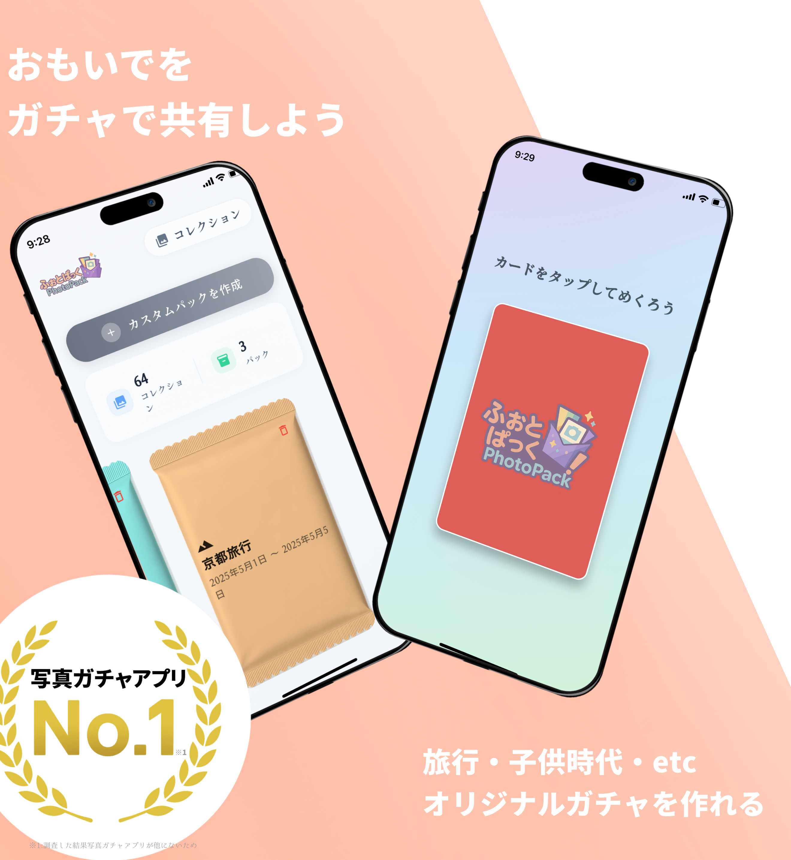 「ふぉとぱっく!」は、あなたのスマートフォンに眠る素敵な写真を、ワクワクするガチャ形式で集められる全く新しいコレクションアプリです! 写真をパック開封! まるでトレーディングカードのパックを開けるように、あなたの写真がランダムに登場!どんな写真が出てくるか、ドキドキの瞬間を楽しめます。アニメーション効果付きで、開封体験をさらに盛り上げます! 自分だけのコレクションを構築 集めた写真はアプリ内でいつでも見返せます。あなただけの特別なフォトコレクションを完成させましょう。 詳細表示で思い出を振り返る コレクション内の写真はタップで拡大表示。一枚一枚の写真に込められた思い出をじっくり振り返ることができます。 「ふぉとぱっく!」で、写真収集をもっと楽しく、もっと特別な体験にしませんか? さあ、あなたも「ふぉとぱっく!」の世界へ!今すぐダウンロードして、写真集めの冒険を始めましょう!