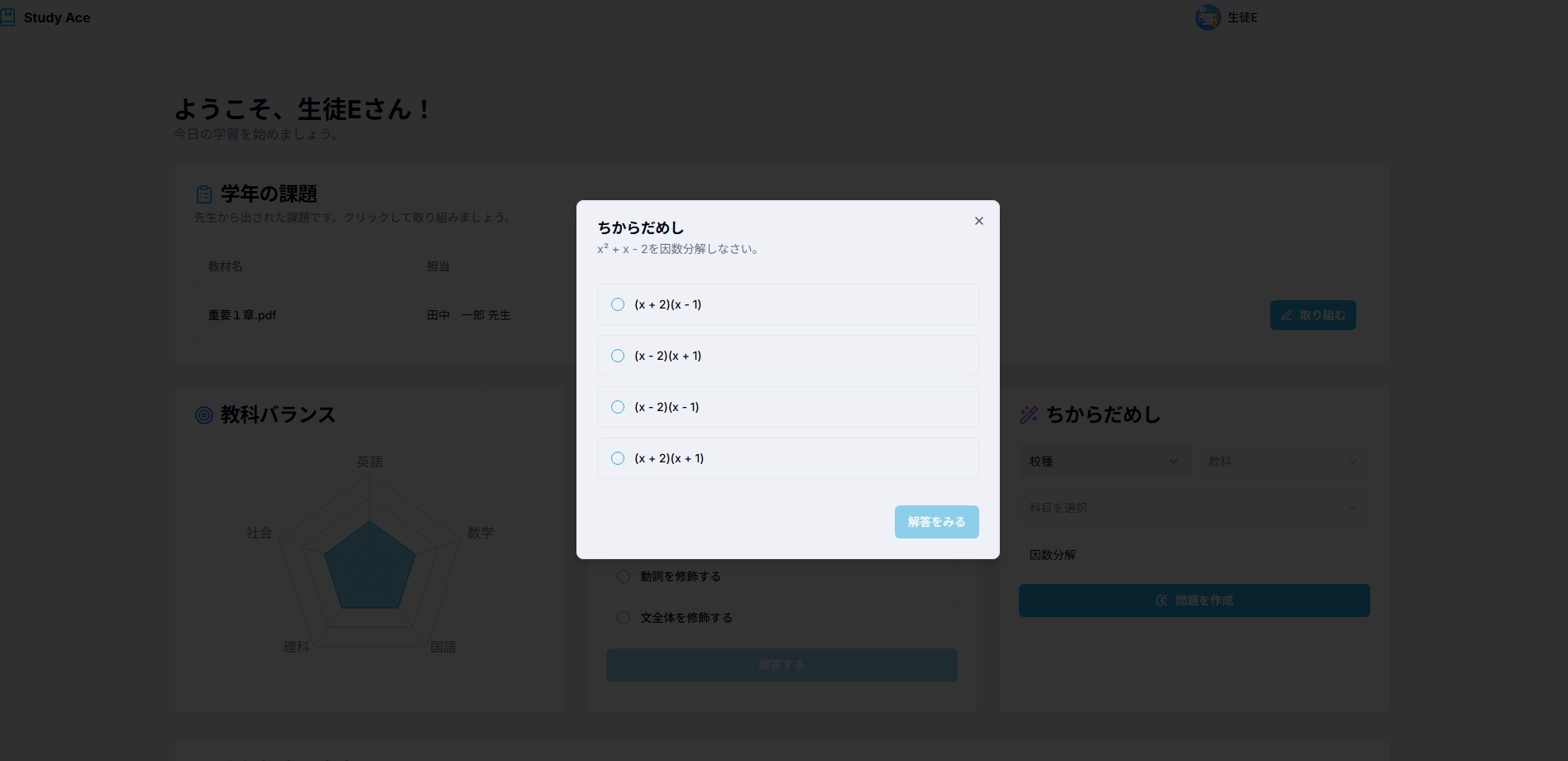 ※先生は、オリジナルのプリントや課題配布用のテキストをアップロード。デモIDは下にあります。 ※生徒は、先生のアップした課題や、AIが先生のプリントを参考に作ったクイズに挑戦。 ※生徒は回答するたびに理解度スコアが変化して、ランクアップするとカードをゲット! ※宿題をするだけでカードも貯まるし、さらに「今日の一題」や「今日の豆知識」などを得ながら理解度を育てる。 ※「今日の一題」は先生のオリジナルプリントを参考にするので、先生のクセがちゃんと身につく!! ※ここまで読んでくれてありがとう。 デモID:student01 デモPass:student01 です。試してみてください。