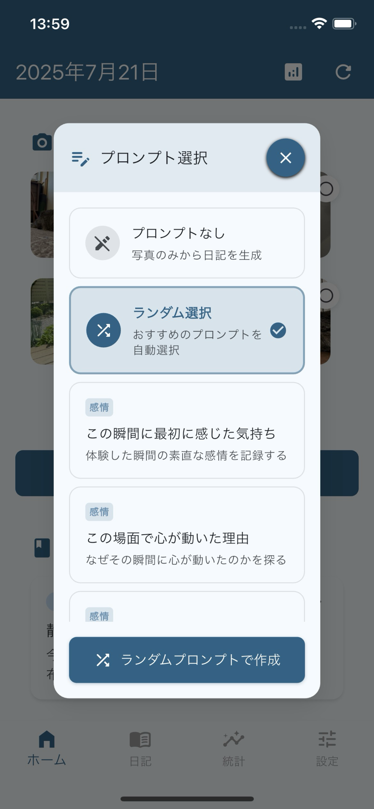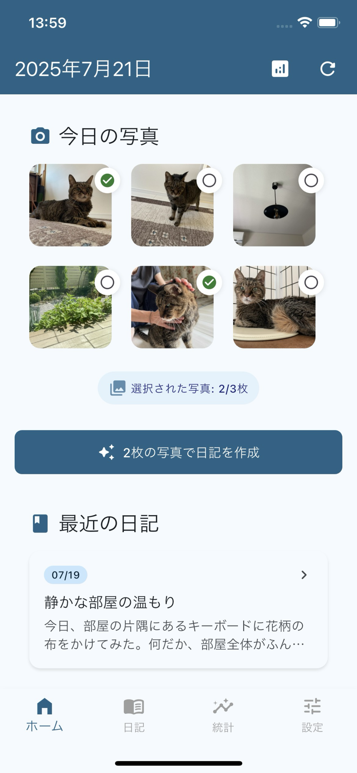 写真が語る、あなただけの物語。 たった3秒で、AIが心温まる日記を自動生成。 毎日の思い出を美しい文章に。