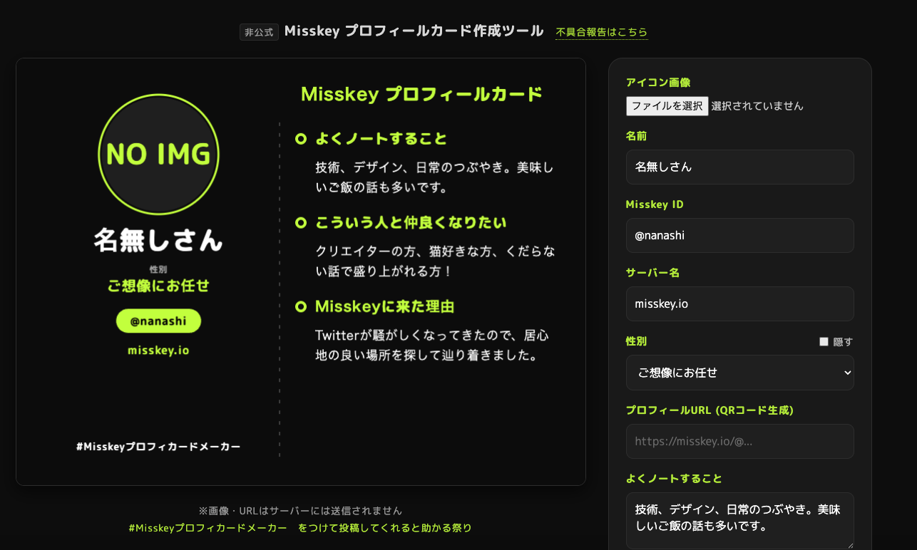 Misskey プロフィールカード作成ツール