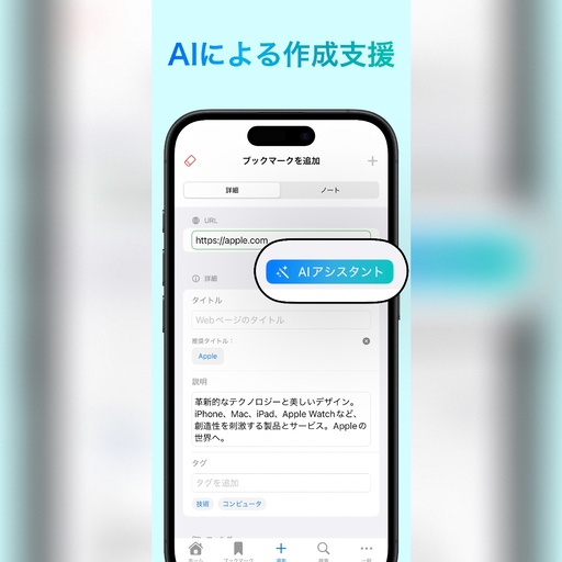 SmartMarkは、AIアシスタントがURLを解析し、タイトル・要約・タグを瞬時に生成するブックマーク管理アプリです。 入力の手間を削減し、保存スピードを最大化。 検索・共有に対応し、あなたの情報ストックを“使える知識”へ変換します。