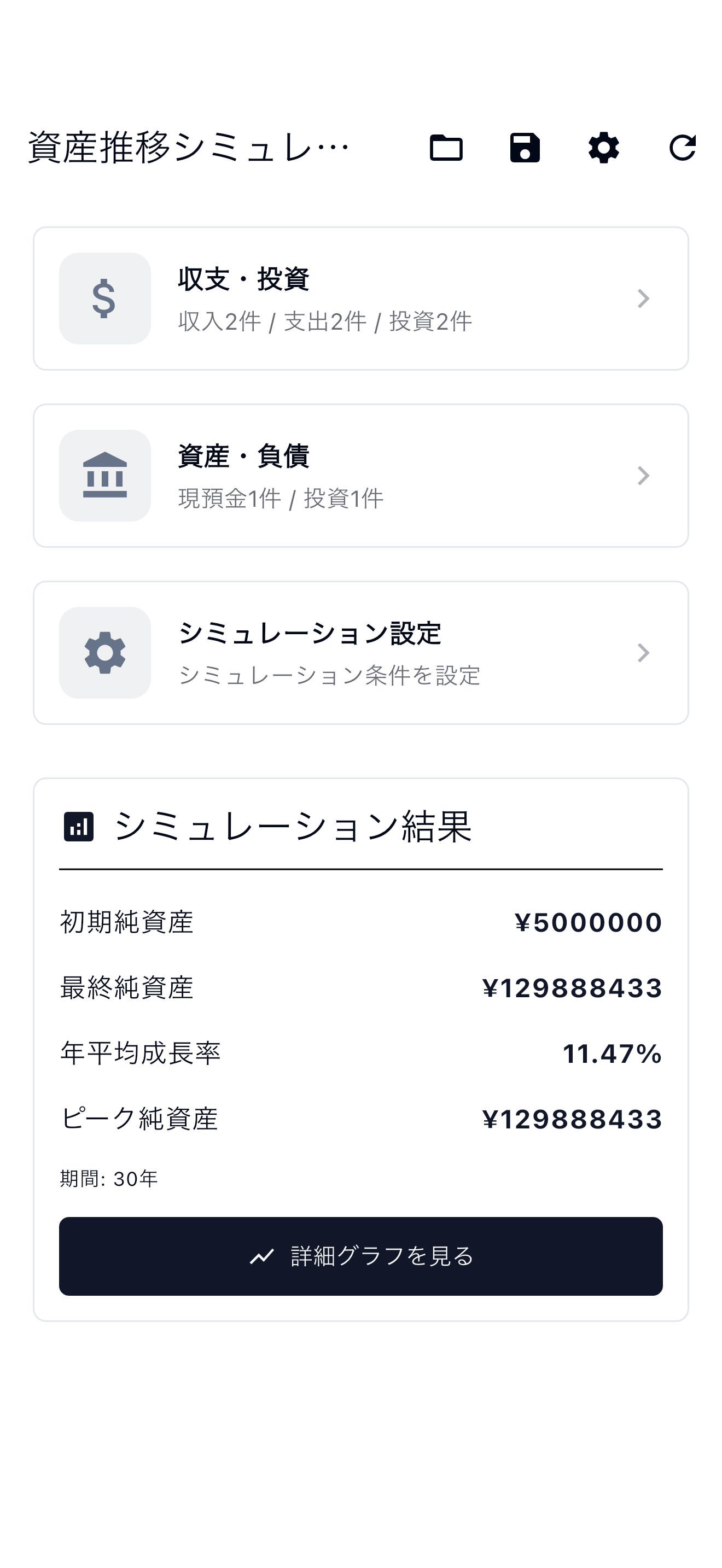 「資産推移シミュレーター」は、あなたの収支・資産・負債の情報をもとに、将来の純資産がどのように変化するかをシミュレーションするアプリです。 【主な機能】 • 収入・支出・投資・ローンを細かく入力 • 年収増加率・物価上昇率・運用利回りを自由に設定 • 配当・分配金の再投資オプション • 純資産の推移をグラフ・表で確認 • 複数のシミュレーションケースを保存して比較 • 日本円・米ドル・ユーロに対応 【こんな方におすすめ】 • FIREや早期退職を目指している方 • 老後の資金計画を立てたい方 • 住宅ローンや教育費など大きな支出の影響を試算したい方 • 投資・貯蓄のバランスを最適化したい方