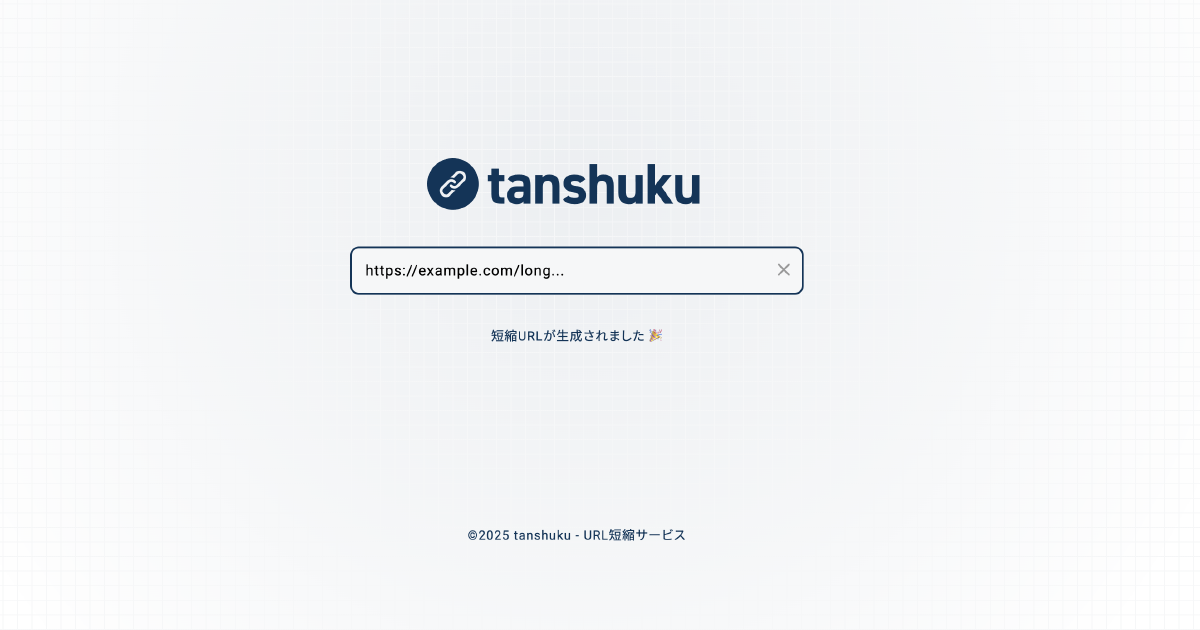 「goo.gl」終了でお困りの方へ。「tanshuku」は2025年8月にリリースされた国産URL短縮サービス。シンプルで使いやすく、日本国内で安心してご利用いただけます。