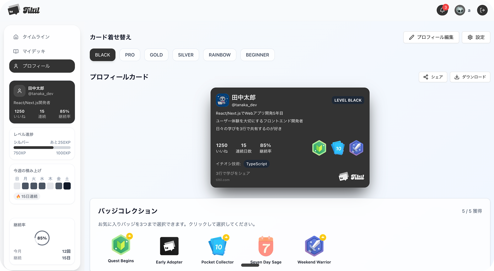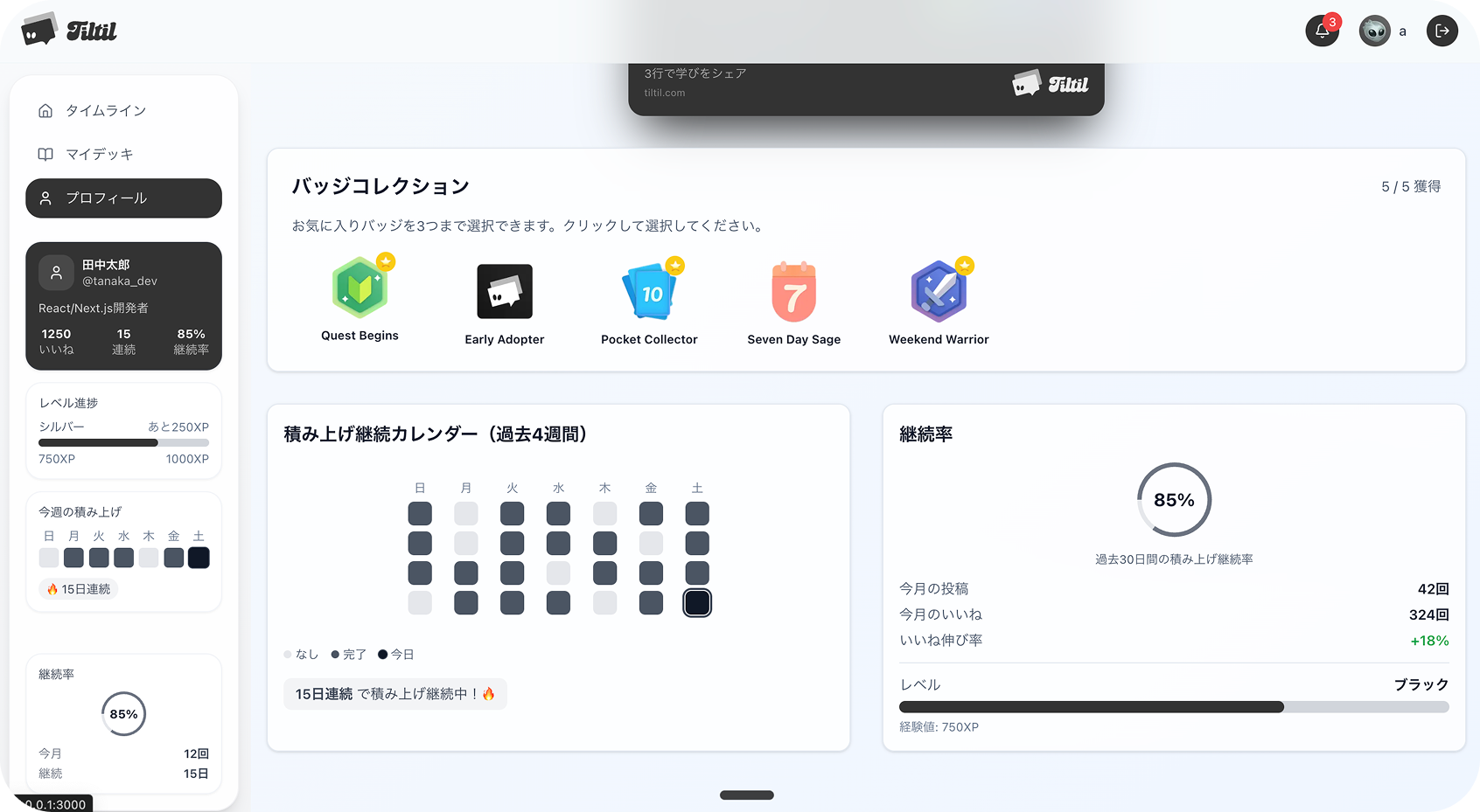 毎日の小さな学びを、大きな成長に変える。 めんどくさがり屋なエンジニアでも続けられる、新しい形の学習記録SNSです。 【特長】 * 3行限定で学習内容を投稿 - 継続しやすい手軽さ * カードデザインで投稿を美しく表示 * 気に入った投稿を「Dex(図鑑)」に保存してマイデッキ作成 * エンジニア同士で学びを共有・フォロー * 継続投稿でバッジ獲得などの楽しい仕組み * 【こんな方におすすめ】 * 学習記録をつけたいけど続かないエンジニア・プログラマー * 長文書くのがめんどくさい方 * サクッと成長を記録・共有したい方 * エンジニアコミュニティとつながりたい方 めんどくさがり屋でも大丈夫。シンプルな3行制限だから、毎日続けられる。 あなたの学習を、カードコレクションのように楽しく管理しましょう。 基本機能は無料でご利用いただけます。